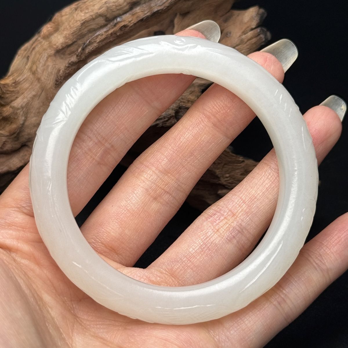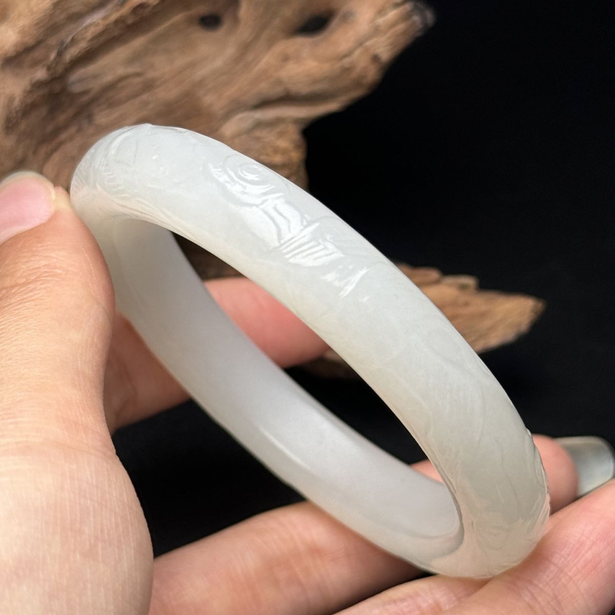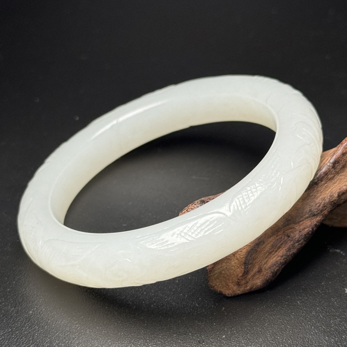 【永】清時代 和田玉 腕輪 仙鶴祥雲紋 手彫 極細工 裝身具 根付 置物擺件 古美術品 時代物 古董品 収集 古美味 旧家蔵出 中国唐物 57g