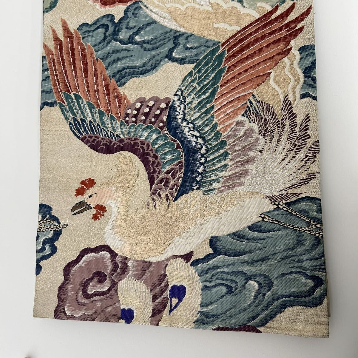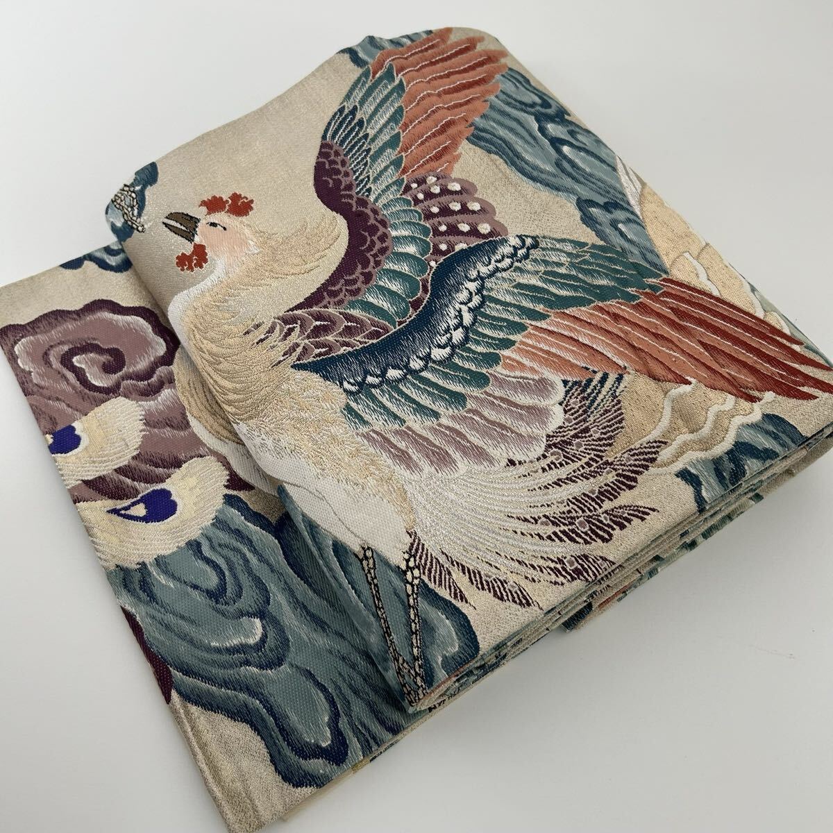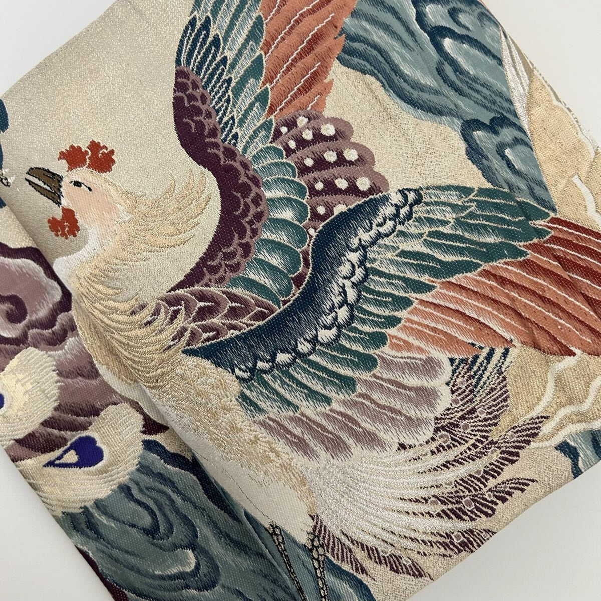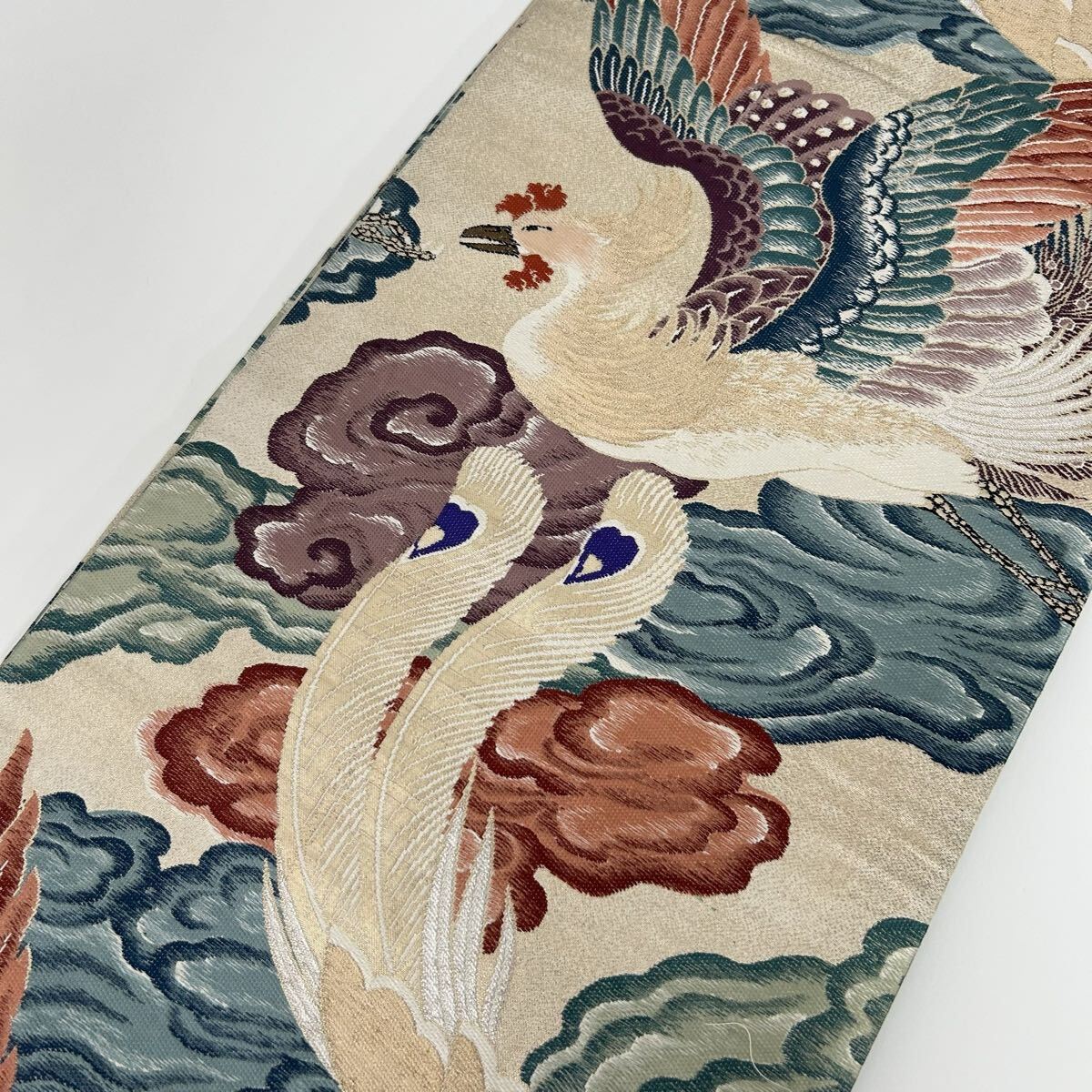 【楓】希少 珍柄 時代物 丸帯 正絹 美術 鳳凰 KK-474
