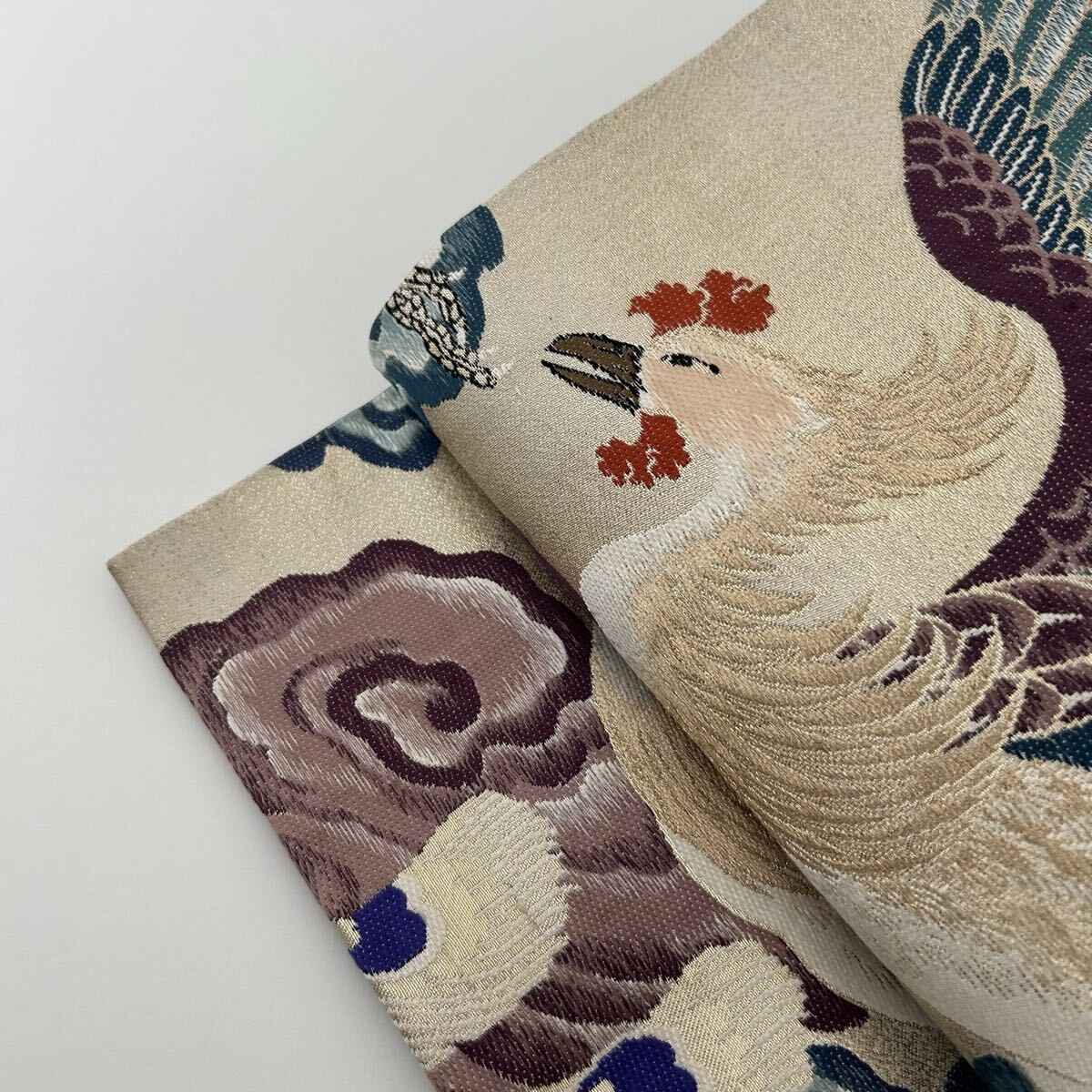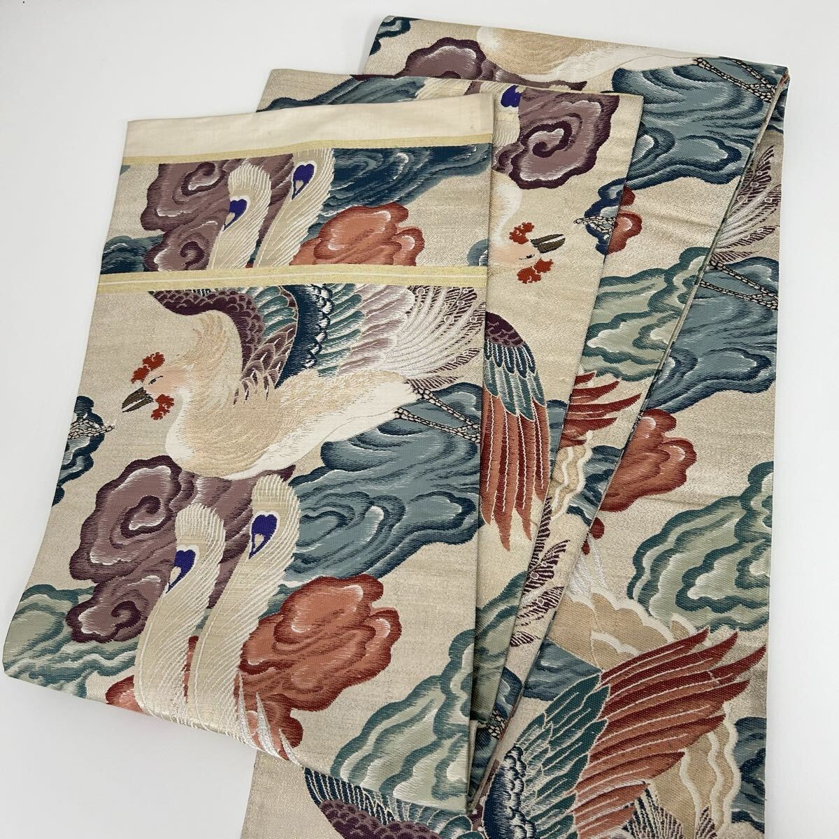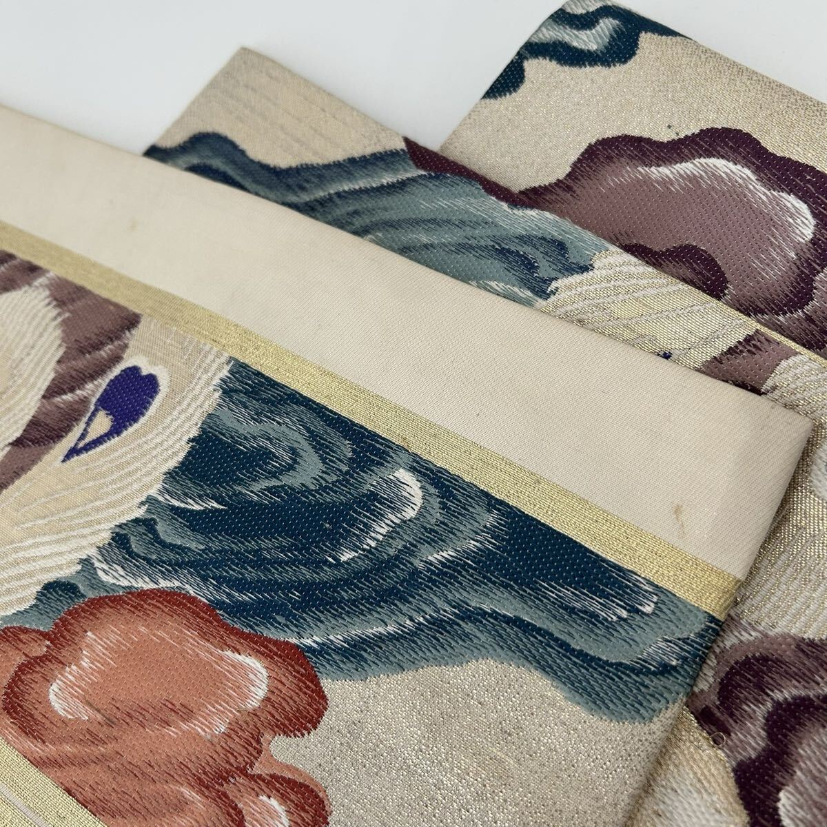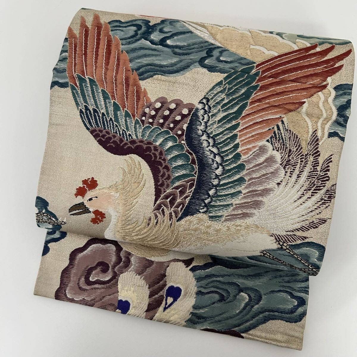 【楓】希少 珍柄 時代物 丸帯 正絹 美術 鳳凰 KK-474