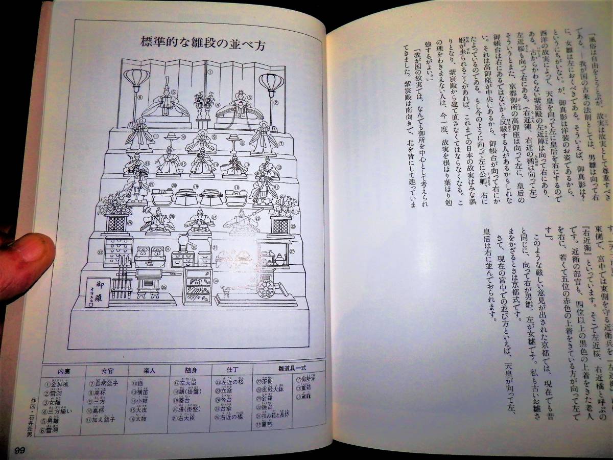 ■■『雑誌』・・・■■ ー”母と子の”ー ●●『お雛さまめぐり』・・・●● **”藤田順子・著”** ◆美術出版社。 ■発行日=1993年 2月10日・(第1刷)。 ■発行所=株式会社・美術出版社。 ■価格=1845円+税。 ■サイズ=15×21cm。 ■状態。 ●表紙に多少の・キズ・ヤケが有ります。 ●本誌内に・多少のヤケが見えますが ●大きなダメージは無く ●年代的には良い状態に思います。 ◆◆注意・・・◆◆ ★発行日より経年を、経て下ります。 コンディションに係らず、古書で有る事を 充分に御理解の上、御入札下さい。 ★神経質な方は入札をご辞退下さい・・!! ●全・106頁・上質光沢紙・・・!! ◆カラーと白黒の構成です。 ●図版・70組・・・!! ◆カラーと白黒の構成です・(わずかに白黒の図版 が含まれます)。 ◆組数ですので総数は、100点くらいでしょうか。 ◆他に、挿絵・挿図が含まれます。 ●50・郷土雛。 ◆青森県・弘前。 ◆秋田県・中山。 ◆秋田県・八橋。 ◆山形県・相良。 ◆宮城県・堤。 ◆長野県・松本。 ◆東京都・浅草。 ◆石川県・金沢。 ◆埼玉県・越谷。 ◆千葉県・芝原。 ◆愛知県・名古屋。 ◆京都府・清水。 ◆京都府・清水。 ◆愛知県・県豊橋。 ◆鳥取県・鳥取。 ◆福岡県・津屋崎。 ◆滋賀県・小幡。 ◆島根県・浜田長浜。 ◆熊本県・熊本。 ◆宮崎県・佐土原。 ●図版に・・・!! ◆No・作品名。 ●図版リストに・・・!! ◆No・作品名・寸法・所蔵。 ●蒐集・資料などの参考に・・・!! ●探されていた方は・この機会に・・・!! ●以下・詳細をご覧ください・・・!! ●掲載案内は・抜粋して下ります・・・!! ●掲載内容は・Q&Aより・問い合わせ下さい・・・!! ●数字記載は目視です・間違いは御容赦下さい。 ●掲載を抜粋紹介し・「タイトル」・と・致します。 ■■■■■■■■■■■■■■■■■■■■■■■■■■ ★★★★★★★★★★★★★★★★★★★★★★★★★★ ■■『母と子のー「お雛さまめぐり」』・・・■■ ●●「まえがき」・・・●● ●「私のお雛さま」・・・● ●●1・「上巳節から雛まつりへ」・・・●● ●「三月三日は川禊をしたお祓いの日」・・・● ●「雛・ひいなという名前」・・・● ●「雛まつりのはじまり」・・・● ●「赤ちゃんを災いから守る」・・・● ー”天児・這子・犬筥・犬張子ー ●●2・「上巳節から雛の節句のお供えもの」・・・●● ●「なぜなぜ草餅・桃の花」・・・● ●「雛まつりのごちそう」・・・● ●●3・「華やかに美しく女のまつり」・・・●● ●「雛壇かざり」・・・● ●「初節句・初雛のお祝い」・・・● ●「私のお雛さま」・を持ってお嫁入り・・・● ●●4・「江戸の春はお雛さまで持ちきり」・・・●● ●「雛市の繁盛」・・・● ●「雛売り」・・・● ●「雛菓子売り」・・・● ●「白酒売り出しの大騒ぎ」・・・● ●●5・「お雛さまの種類と流れ」・・・●● ●「紙雛」・・・● ●「享保雛」・・・● ●「次郎左衛門雛」・・・● ●「有職雛」・・・● ●「古今雛」・・・● ●「芥子雛」・・・● ●「御触書」・・・● ●「雛道具」・・・● ●「男雛と女雛の右と左」・・・● ●●「一般的な雛壇の並べ方」・・・●● ●●「図版リスト」・・・●● ●●「雛のみられる施設」・・・●● ●●「あとがき」・・・●● ●●「図版」・・・●● ◆1・有職雛。 ・肥田家。 ◆2・有職雛。 ・肥田家。 ◆3・古今雛。 ・諏訪・高島城。 ◆4・享保雛。 ・田中家。 ◆5・享保雛。 ・細谷家。 ◆6・古今雛。 ・川西家。 ◆7・古今雛。 ・畠山家。 ◆8・古今雛。 ・諏訪・高島城。 ◆9・古今雛。 ・諏訪・高島城。 ◆10・享保雛。 ・今井家。 ◆11・享保雛。 ・本間美術館。 ◆12・雛。 ・ ◆13・次郎左衛門雛。 ・本間美術館。 ◆14・享保雛。 ・東玉・人形の博物館。 ◆15・稚児雛。 ・茨城県歴史館。 ・(水戸・一橋徳川家)。 ◆16・古今雛。 ・戸田家。 ◆17・犬筥。 ・肥田家。 ◆18・古今雛。 ・平田記念館。 ◆19・古今雛。 ・平田記念館。 ◆20・古今雛。 ・酒田・相馬屋。 ◆21・古今雛。 ・畠山家。 ◆22・古今雛。 ・畠山家。 ◆23・古今雛。 ・金沢・山錦楼。 ◆24・古今雛。 ・長野家。 ◆25・古今雛。 ・庄司家。 ◆26・有職雛。 ・京都府立総合資料館。 ◆27・有職雛・(狩衣)。 ◆28・有職雛・(束帯)。 ・京都府立総合資料館。 ◆29・有職雛。 ・茨城県歴史館。 ・(水戸・一橋徳川家)。 ◆30・有職雛。 ・田宮家。 ◆31・雛段飾り。 ・二藤部家。 ◆32・雛段飾り。 ・本間家。 ◆33・立姿有職雛。 ・滴翠美術館。 ◆34・享保雛。 ・二藤部家。 ◆35・享保雛。 ・榎本家。 ◆36・享保雛。 ・高桑家。 ◆37・享保雛。 ・本間美術館。 ◆38・享保雛。 ・榎本家。 ◆39・享保雛。 ・宮本家。 ◆40・寛永雛。 ◆41・次郎左衛門雛。 ・三井家。 ◆42・次郎左衛門雛。 ・三井家。 ◆43・室町雛。 ・滴翠美術館。 ◆44・次郎左衛門雛。 ・成巽閣。 ・(金沢・前田家)。 ◆45・立雛。 ・本間美術館。 ◆46・立雛。 ・本間美術館。 ◆47・立雛
