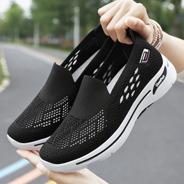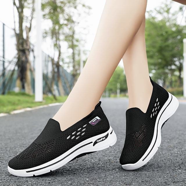 ★スニーカー レディース メッシュ レディース靴 スポーツ アウトドア 春秋 軽量 散歩シューズ 通気性 通勤 婦人靴 ブラック24.5cm