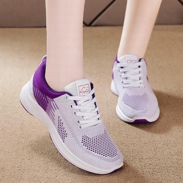 ★スニーカー レディース メッシュ レディース靴 スポーツ アウトドア 春秋 軽量 散歩シューズ 通気性 通勤 婦人靴 紫23cm