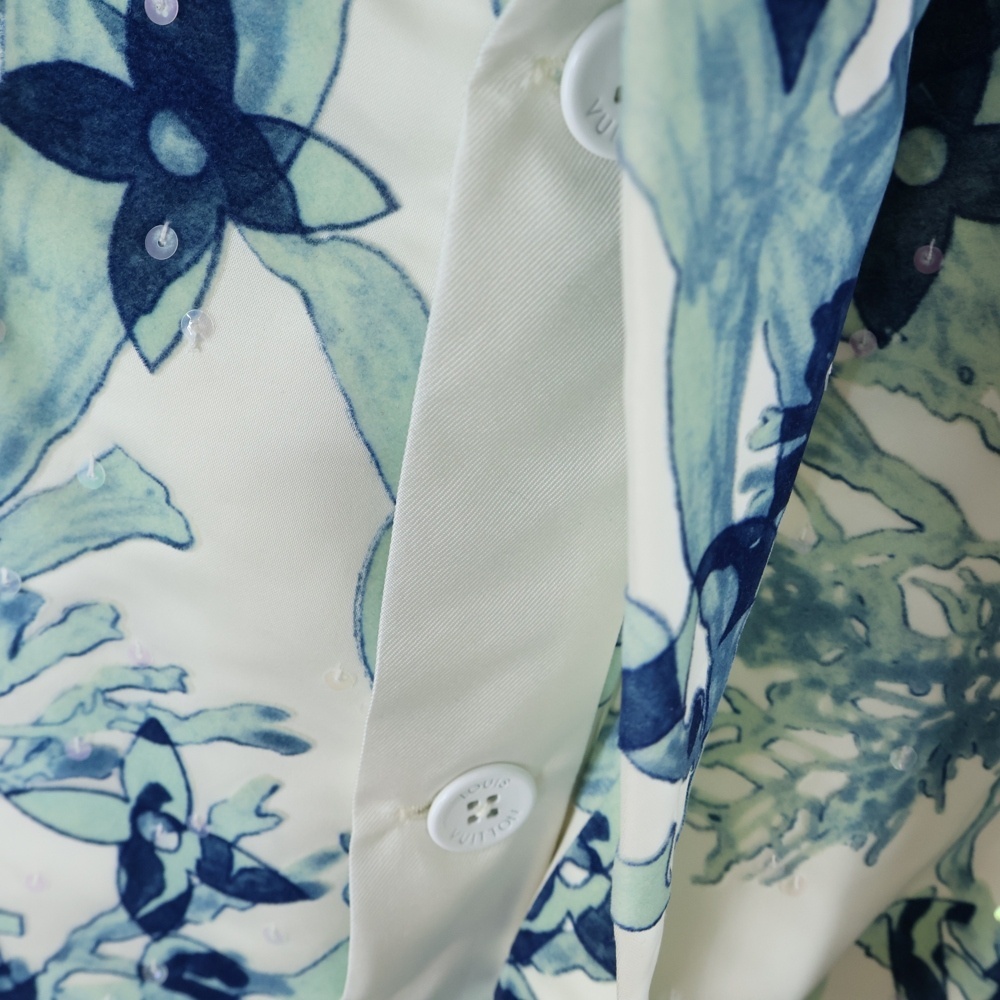 LOUIS VUITTON ルイヴィトン スパンコール装飾 エンブロイダリー 総柄 ジャケット ブルゾン ブルー×ホワイト RM232M ZS1 HPB12W