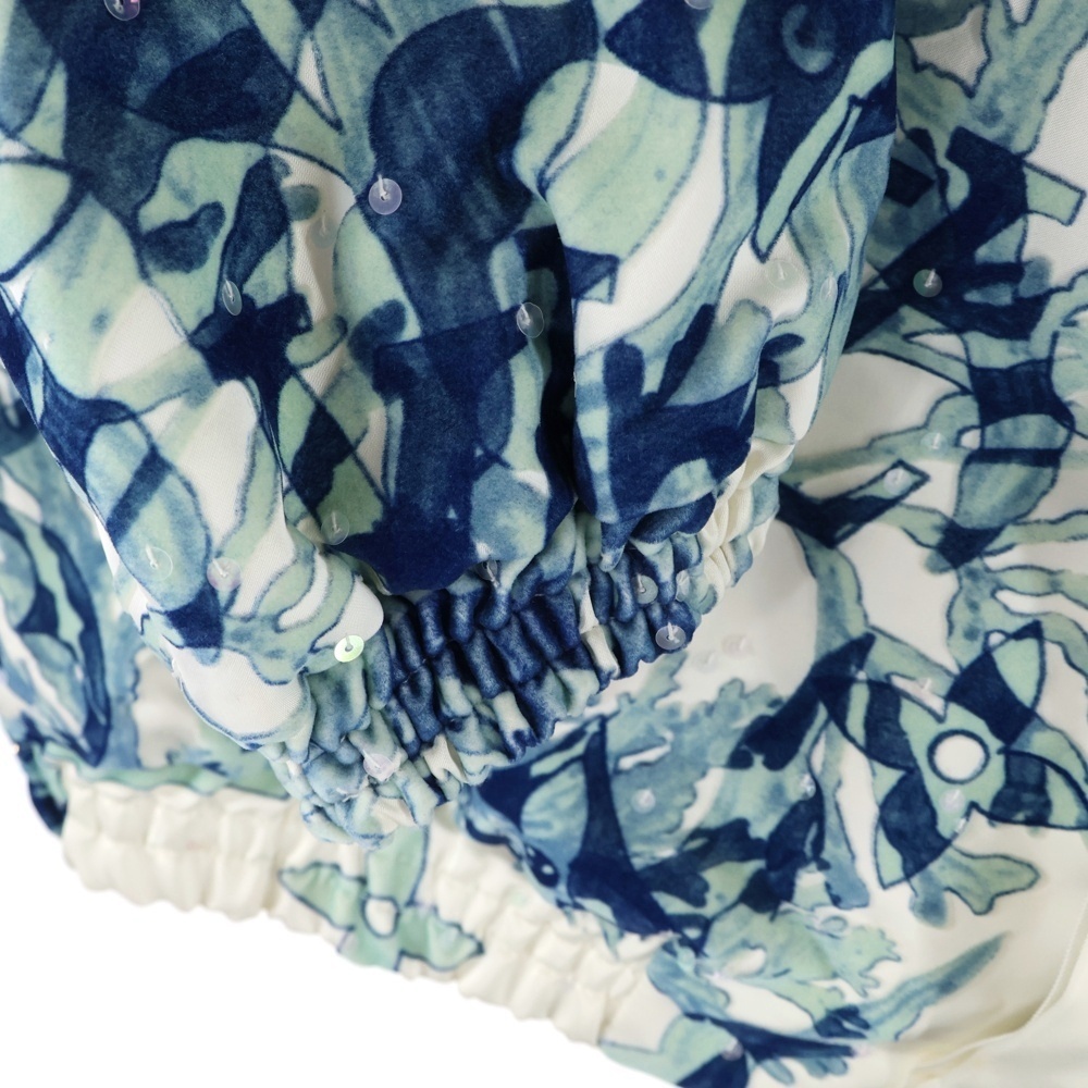 品名スパンコール装飾 エンブロイダリー 総柄 ジャケット ブルゾン ブルー×ホワイト RM232M ZS1 HPB12W