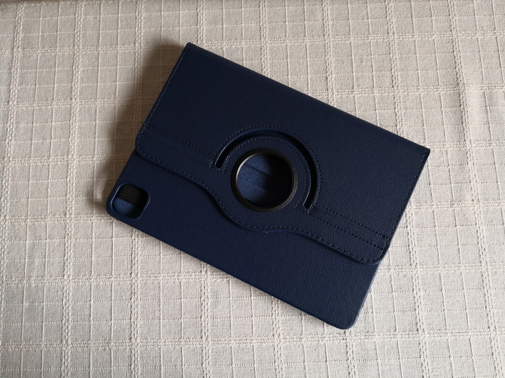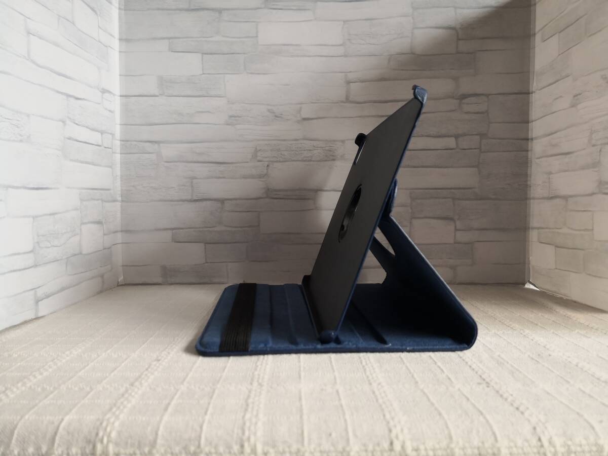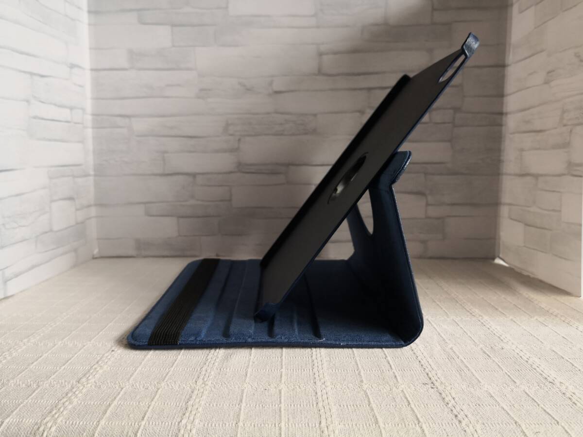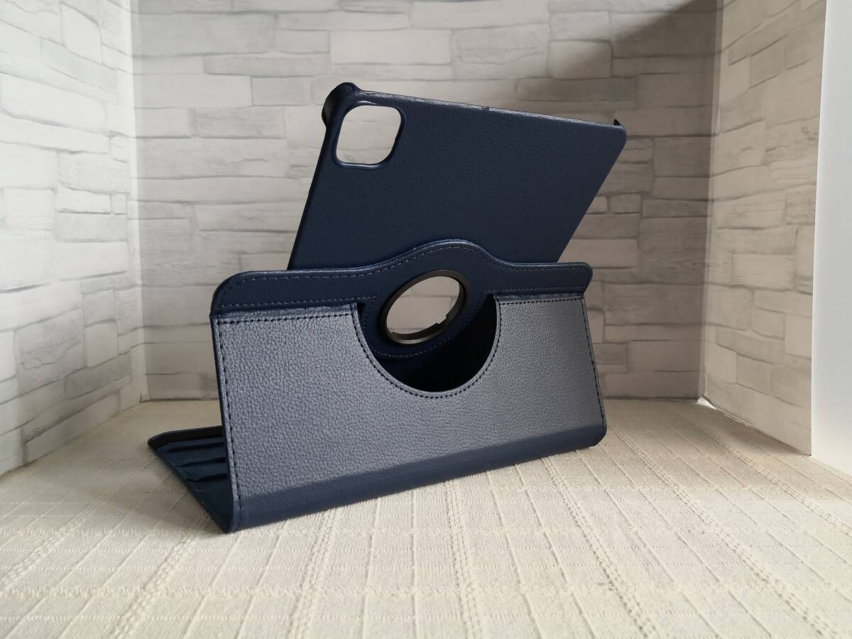 iPad Air 5/4世代 10.9インチ共用 ネイビー 360度回転機能,3段スタンド機能,自動スリープ機能 ベルト付き ケース
