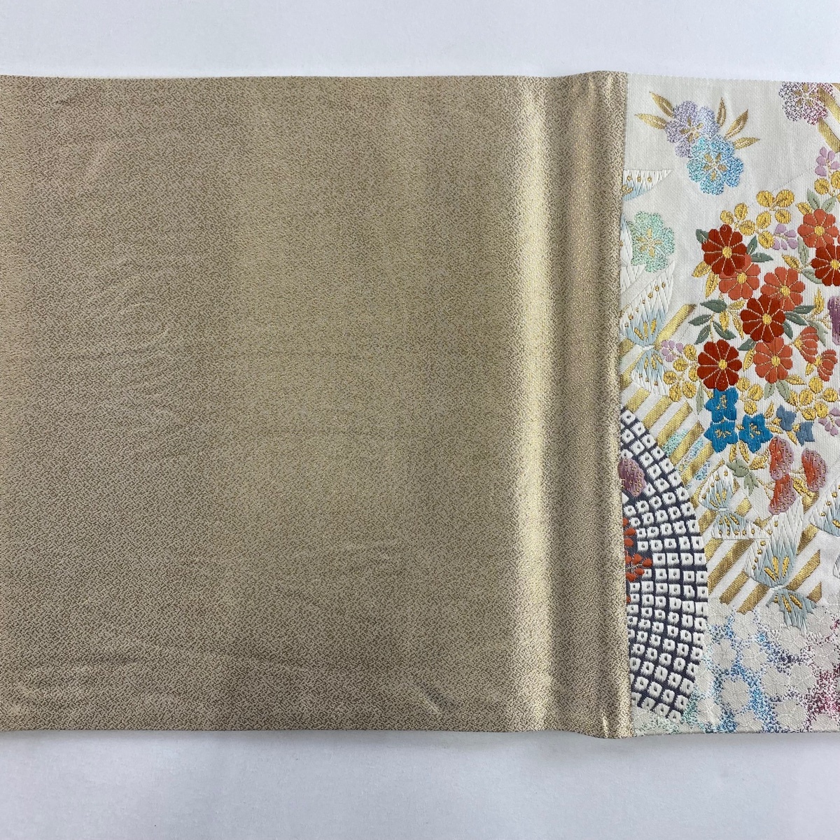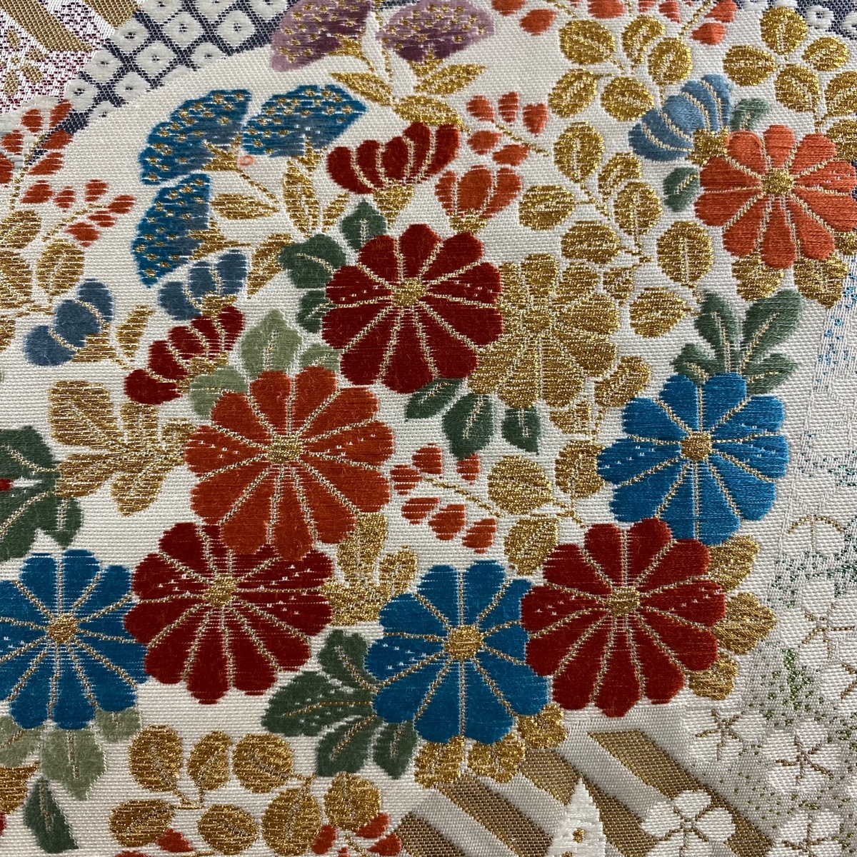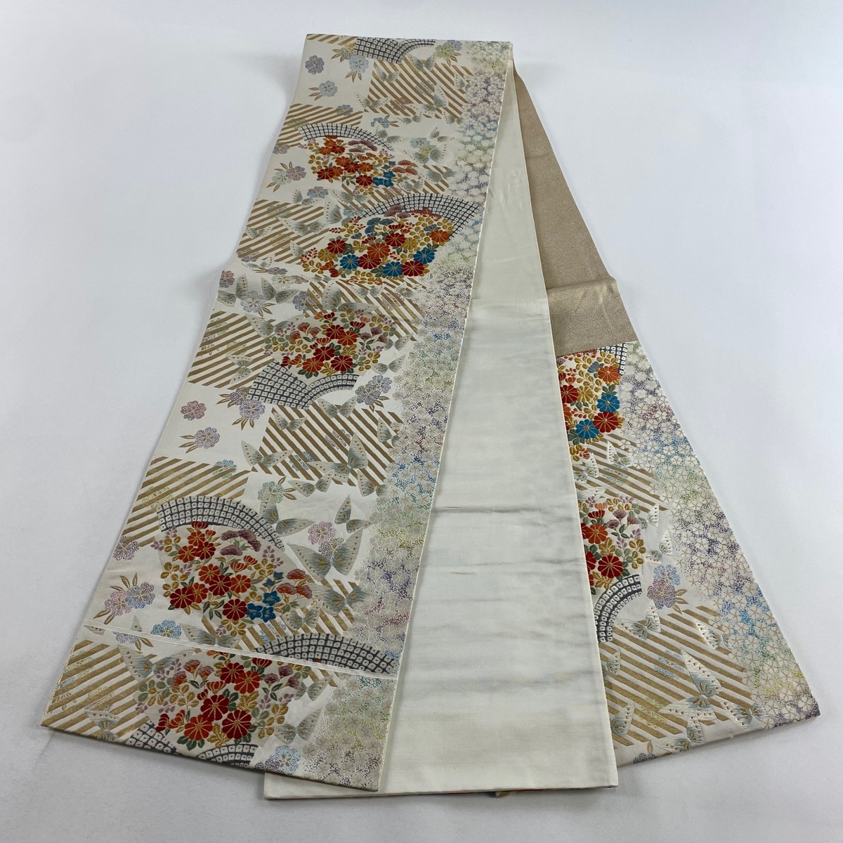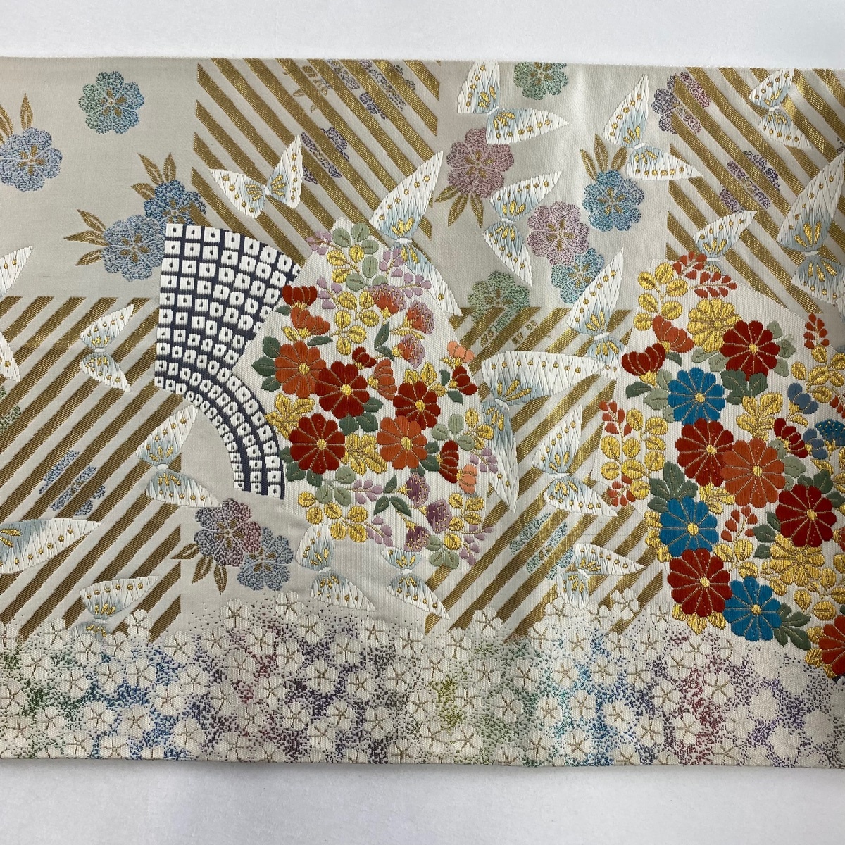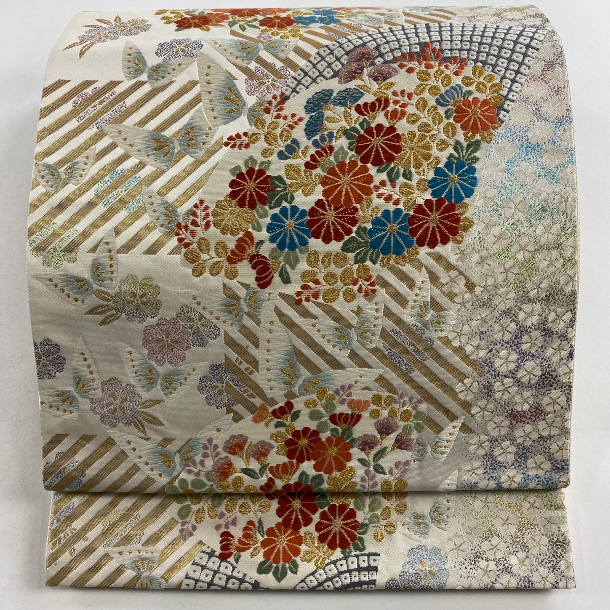 | 袋帯 美品 秀品 草花 蝶 金糸 箔 クリーム 六通 正絹 【中古】 |