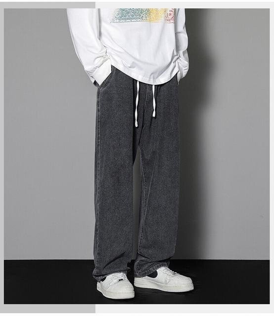 ワイドパンツ デニムパンツ メンズ バギー デニム パンツ ズボン ボトムス シンプル カジュアル グレー XL