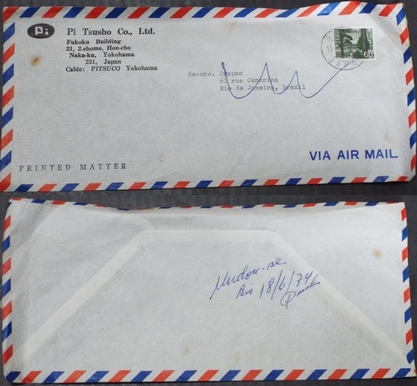 236☆☆エンタ・60円一枚貼・ブラジル宛航空便・差出人戻し。横浜港郵便局消☆