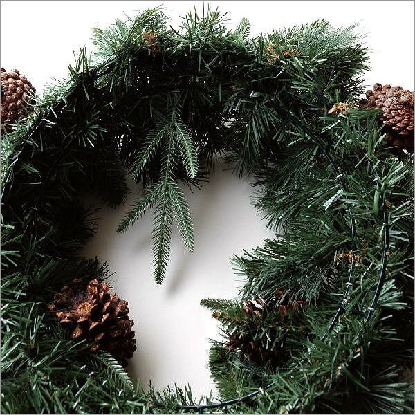 | フェイクの色々な葉をミックスした ボリューム感のあるリースに 天然の松ぼっくりが付いた LED付きの高級感のあるリース LEDライトの点灯は3段階 ボタンを押すごとに タイマーモード→常時点灯モード→消灯を 繰り返します お手持ちのオーナメントや リボンをデコレーションして オリジナルリースに仕上げて 楽しむこともできそうです 商品名 : もみの木とコーンのLEDリース 商品番号 : hal5127 全体のサイズ(cm) : 直径55×奥行15 材質 : PVC プラスチック 松かさ 重量 : 1.5kg 生産国 : 中国 ※単3電池×3個使用(お試し用電池付き) ※リース取付用の紐をお付けします ※装飾用の素材は、配送中やご使用中の僅かな振動によりこぼれ落ちる場合がございます ※手作り品につきパーツの配置に個体差がございます ※ディスプレイによる色の違いはご了承下さい |