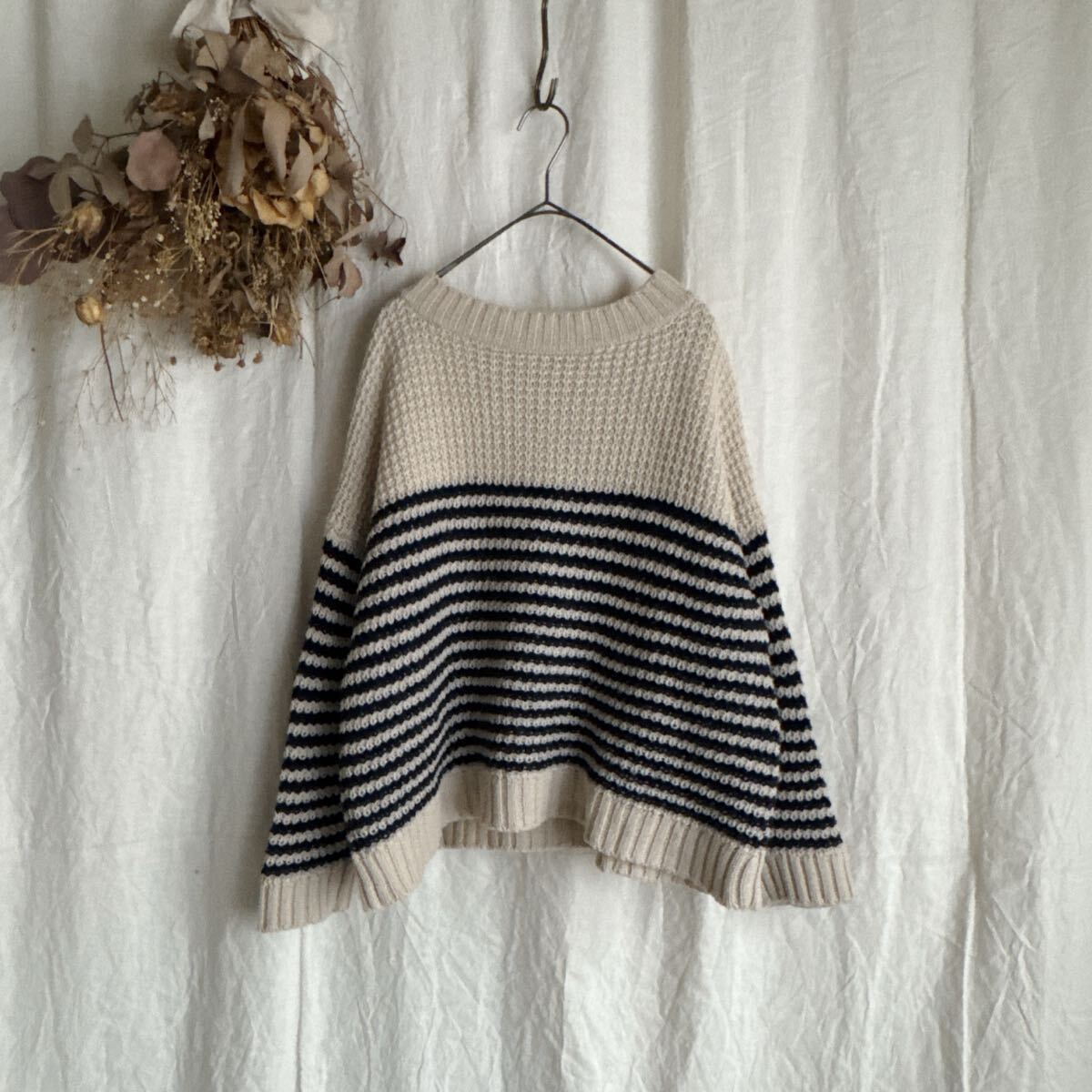 MAXMARA WEEKEND マックスマーラ ウィークエンド ウール ボーダー ワイドシルエット ニット ベージュ×ネイビー S