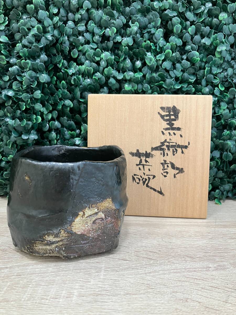 V-19-35【八】高内秀剛 黒織部茶碗 茶道具 茶碗 共箱