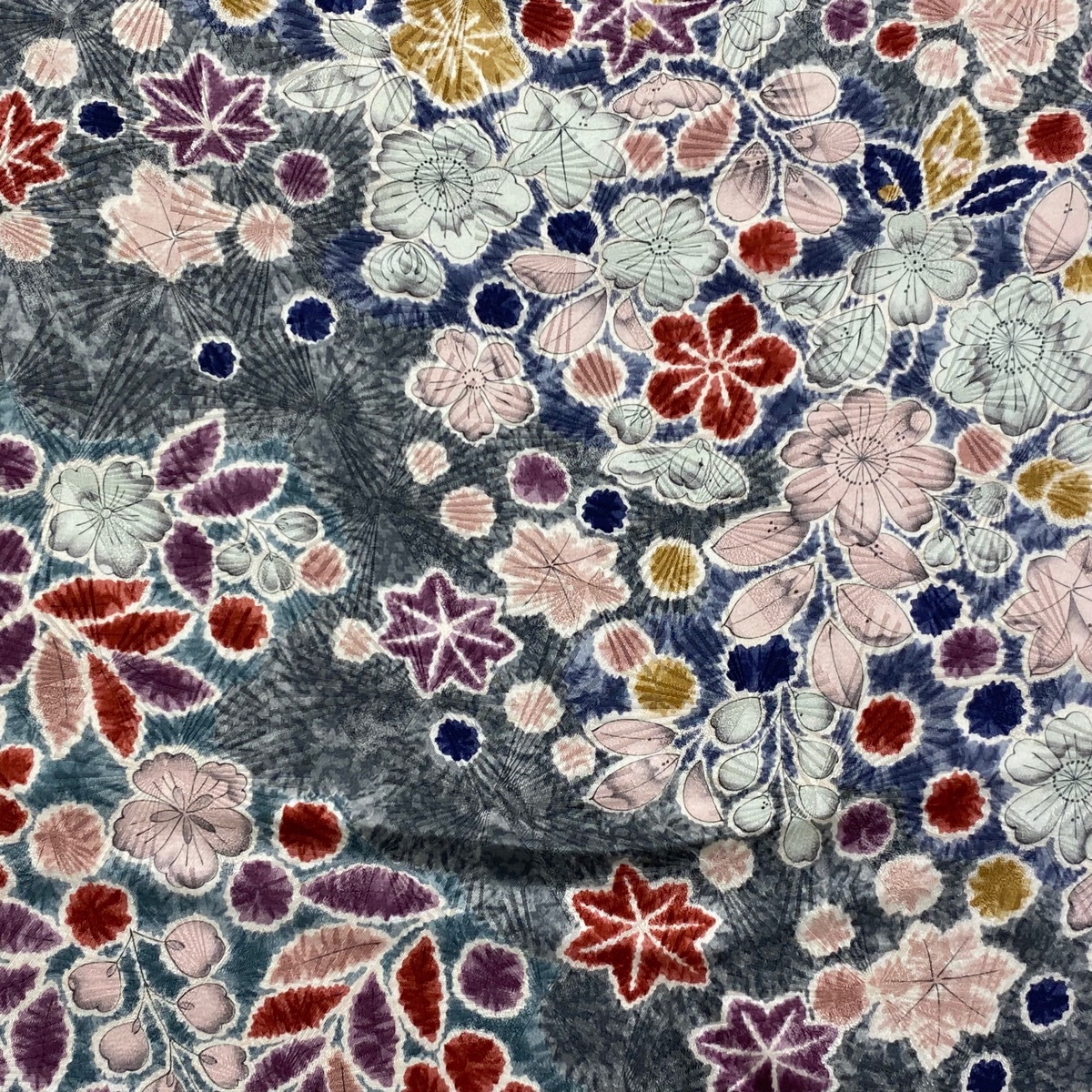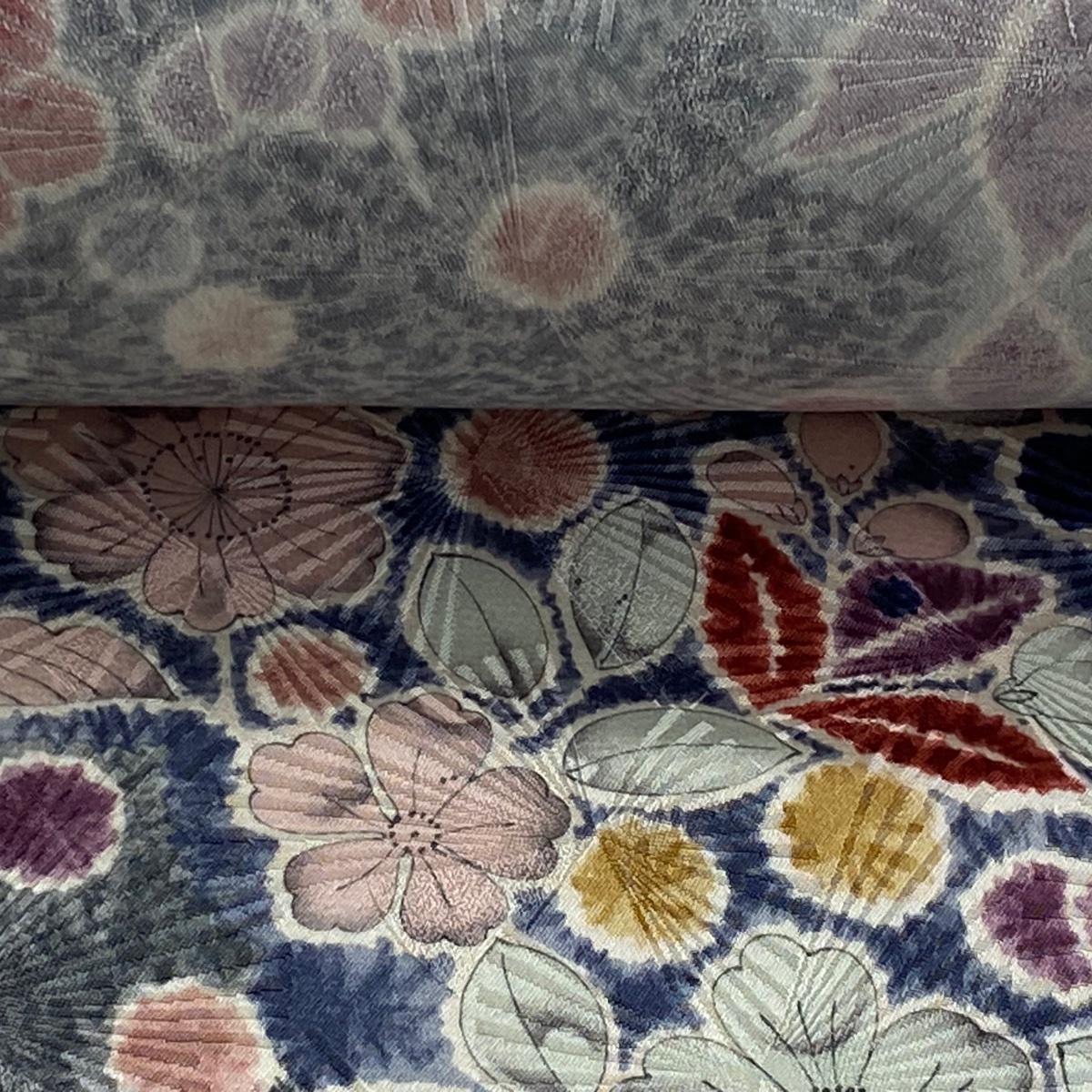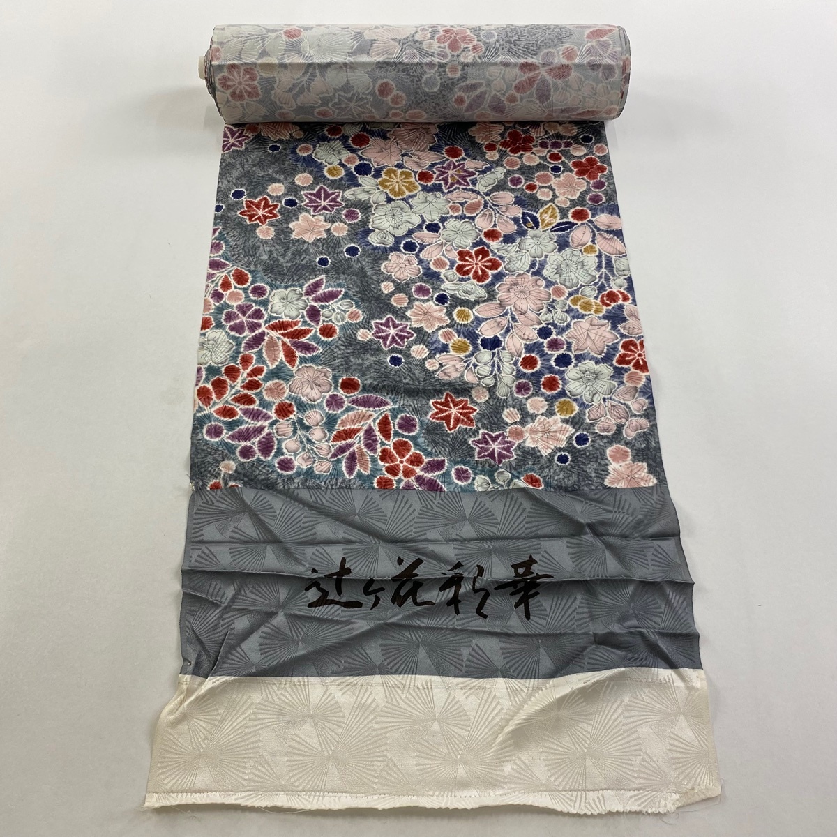 | 反物 秀品 小紋 辻が花柄 灰色 正絹 【中古】 |