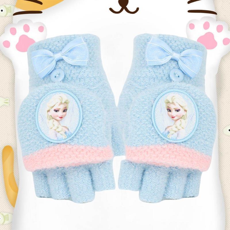 ★新品★アナと雪の女王 エルサ プリンセス キッズ手袋 フィンガーレス ミトン 2way 子供用 女の子 かわいい リボン付き 防寒 冬小物