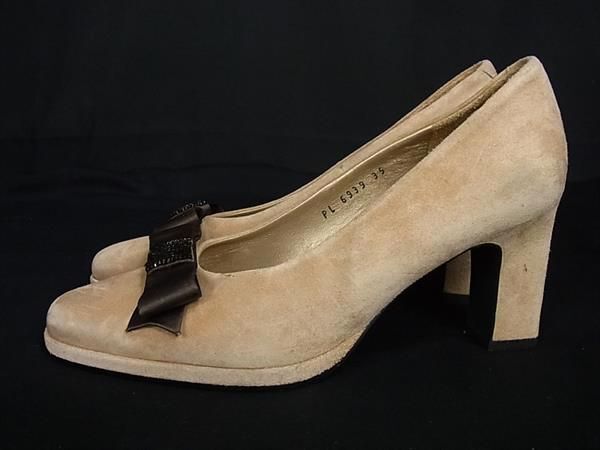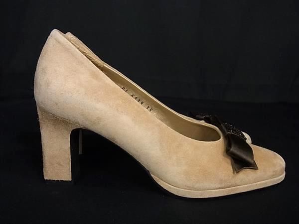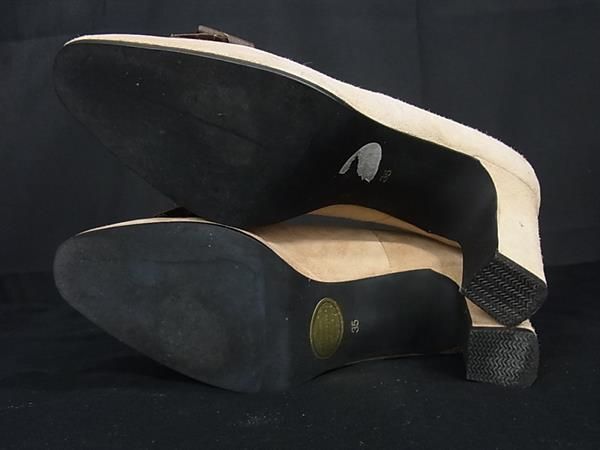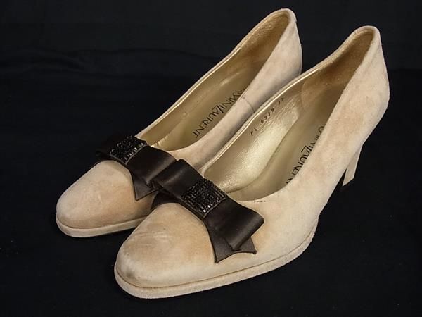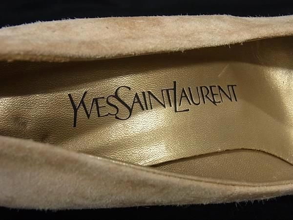 YVESSAINTLAURENT イヴサンローラン スエード×ナイロン リボン ヒール パンプス サイズ35 (約22.0cm) 靴 シューズ ベージュ系 DG2469