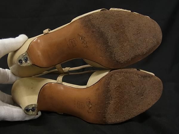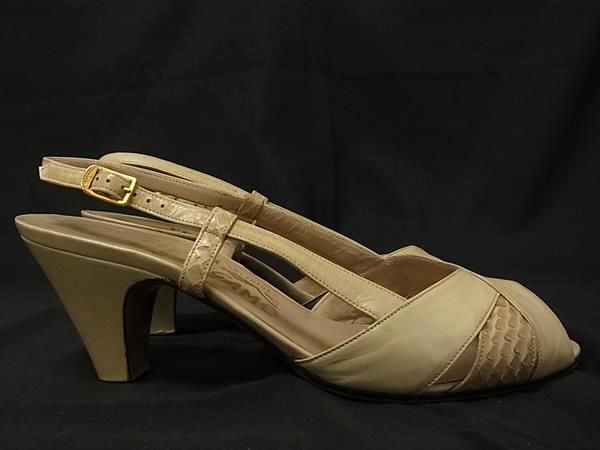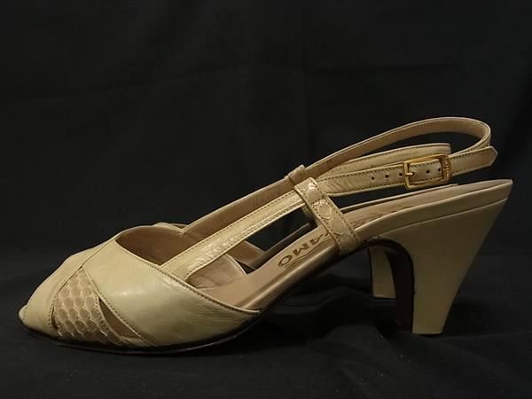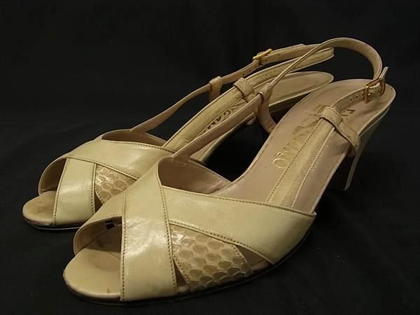 Salvatore Ferragamo フェラガモ レザー×パイソン ヒール サンダル 靴 シューズ レディース クリーム系 DF7015