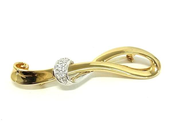 ■極美品■ pierre cardin ピエールカルダン ラインストーン ピンブローチ ピンバッジ アクセサリー ゴールド系×シルバー系 DE6250
