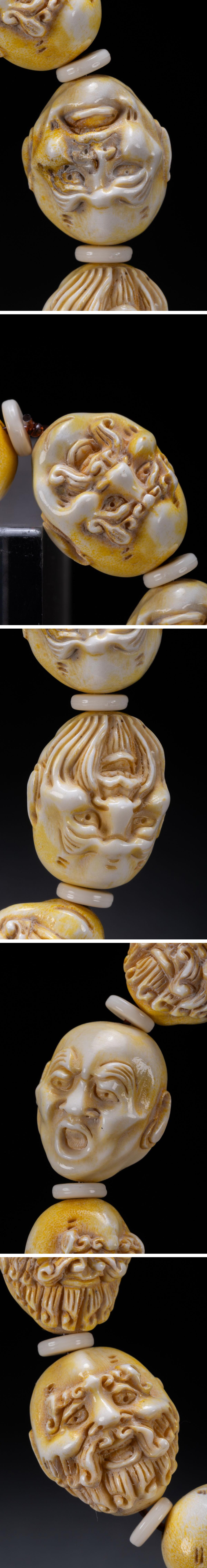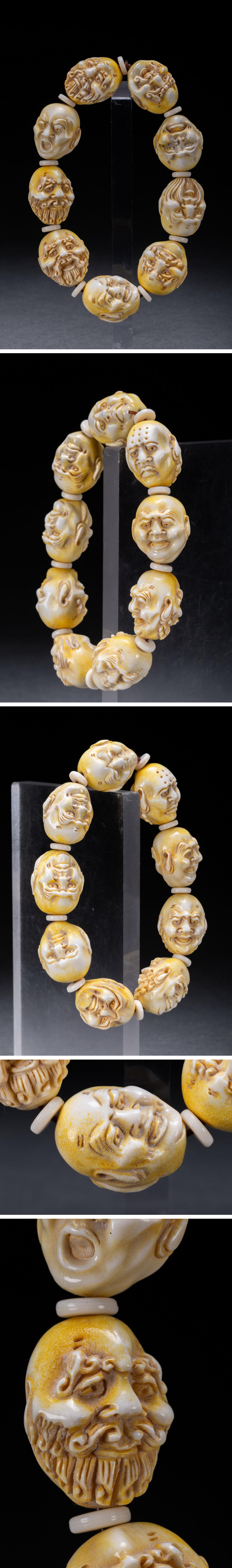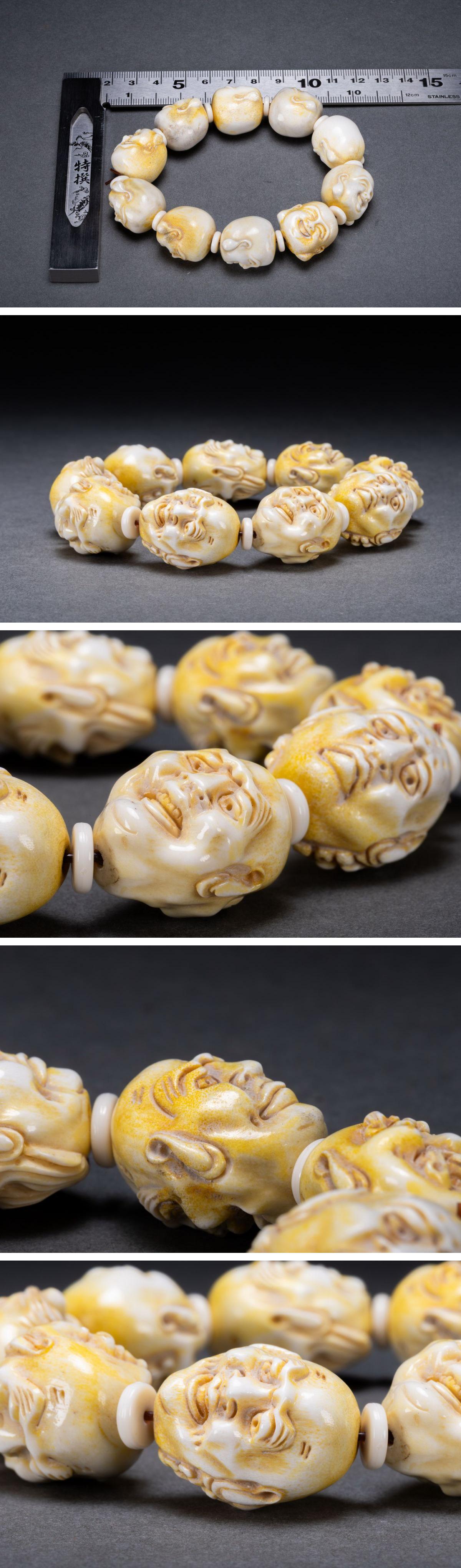 【清】某有名オークション購入 時代物 天然白材 羅漢紋数珠 古置物 古擺件 中国伝来 古美術 時代コレクション7L8-251