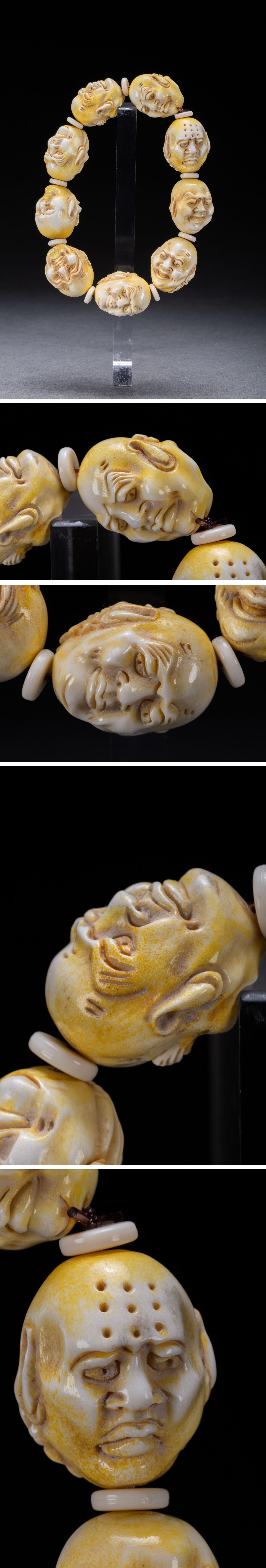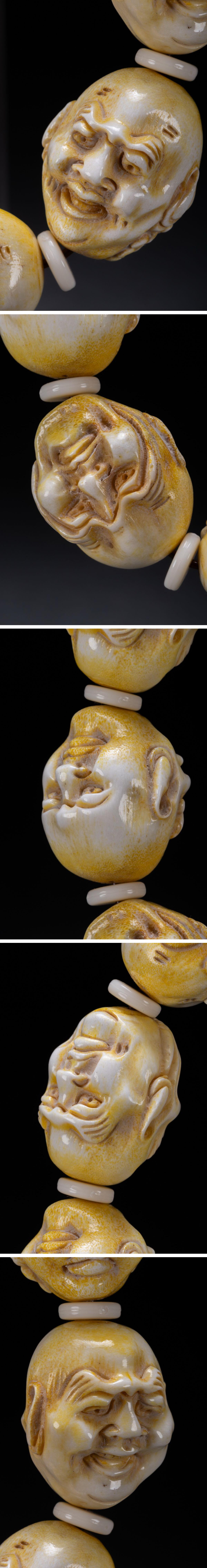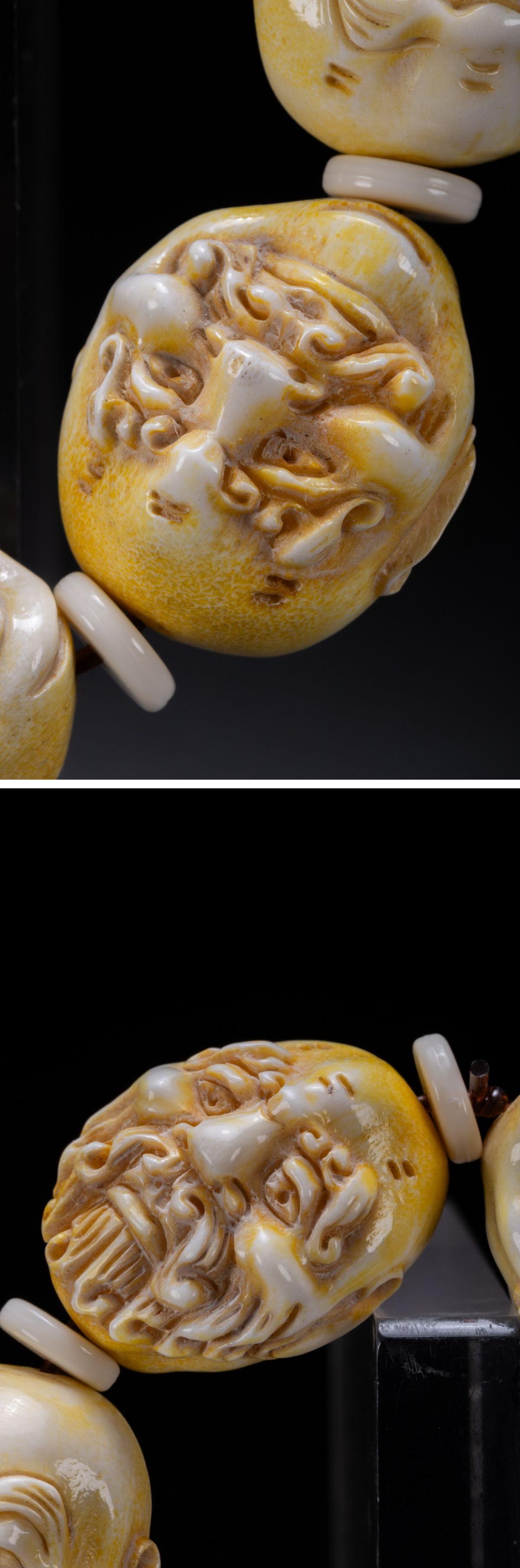 【清】某有名オークション購入 時代物 天然白材 羅漢紋数珠 古置物 古擺件 中国伝来 古美術 時代コレクション7L8-251