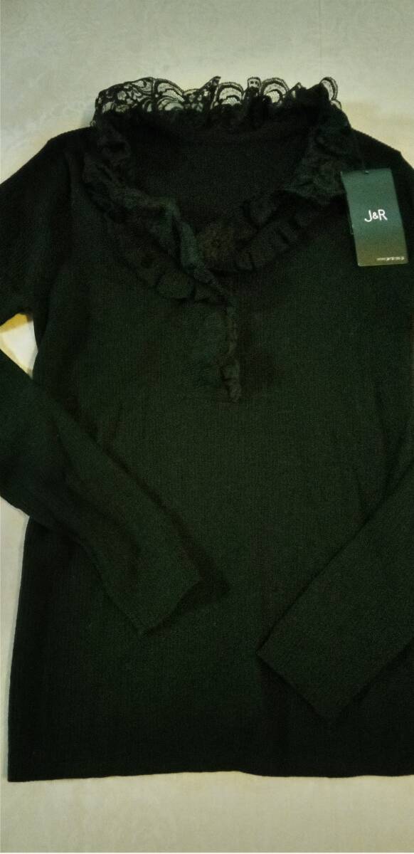J&R ジェイアンドアール ウールセーター 衿回りがレース付きの素敵なデザインです