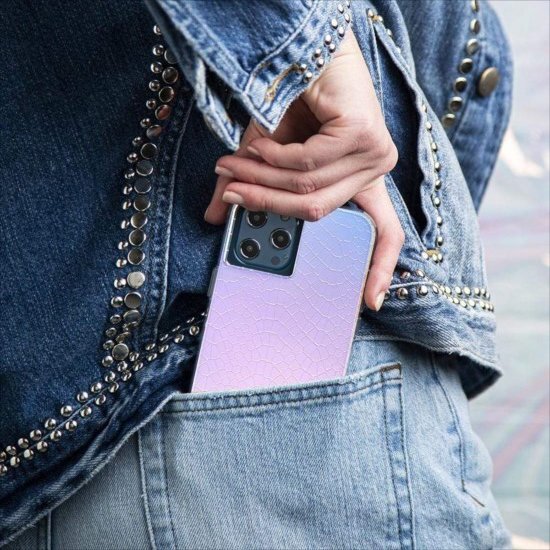 スネークスキンスタイルのデザインで、虹色に輝くiPhoneケース。