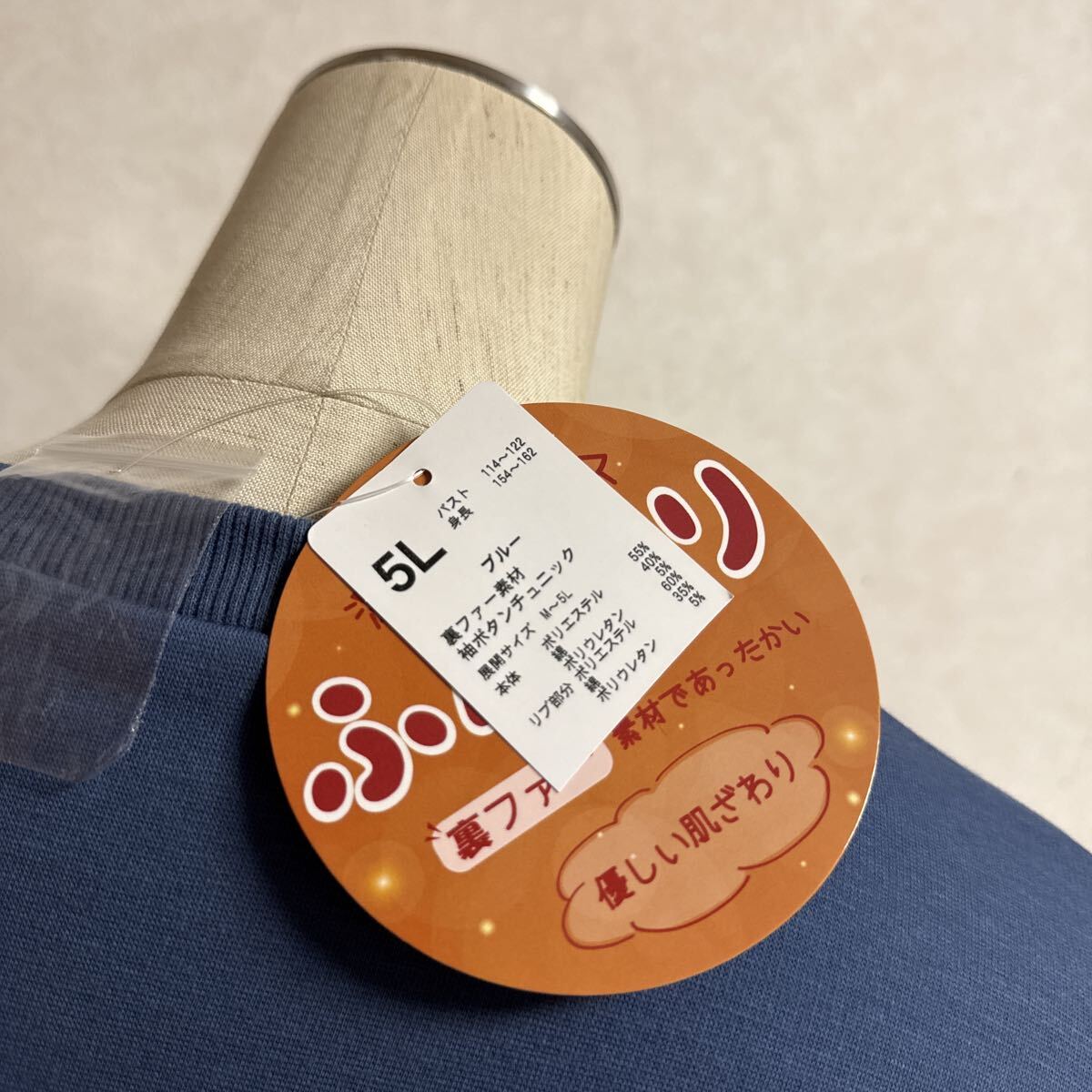 KN3363 *5L 大きいサイズ ふんわり裏ファー袖ボタンチュニック