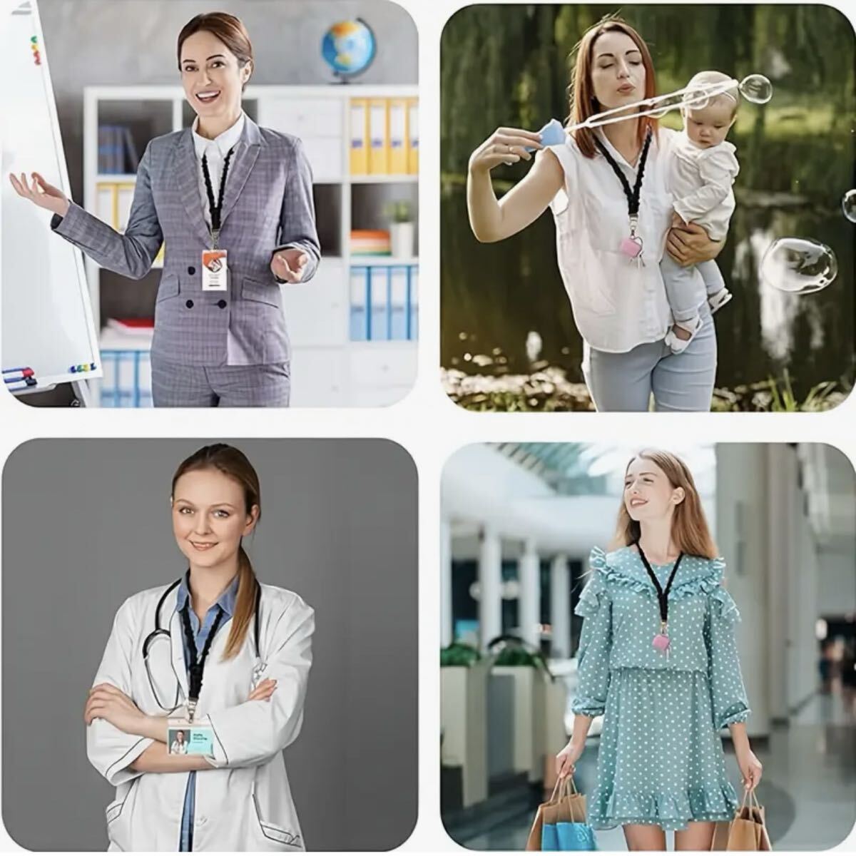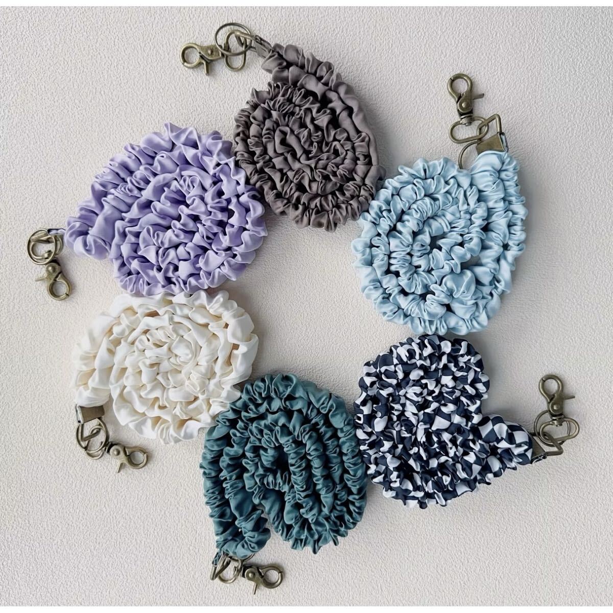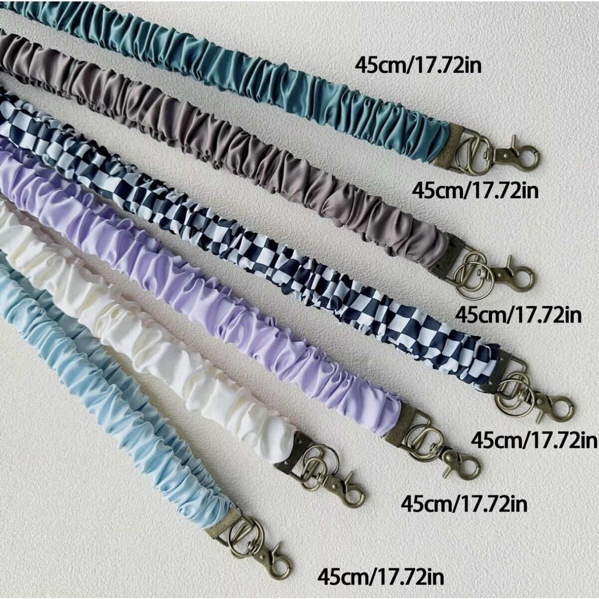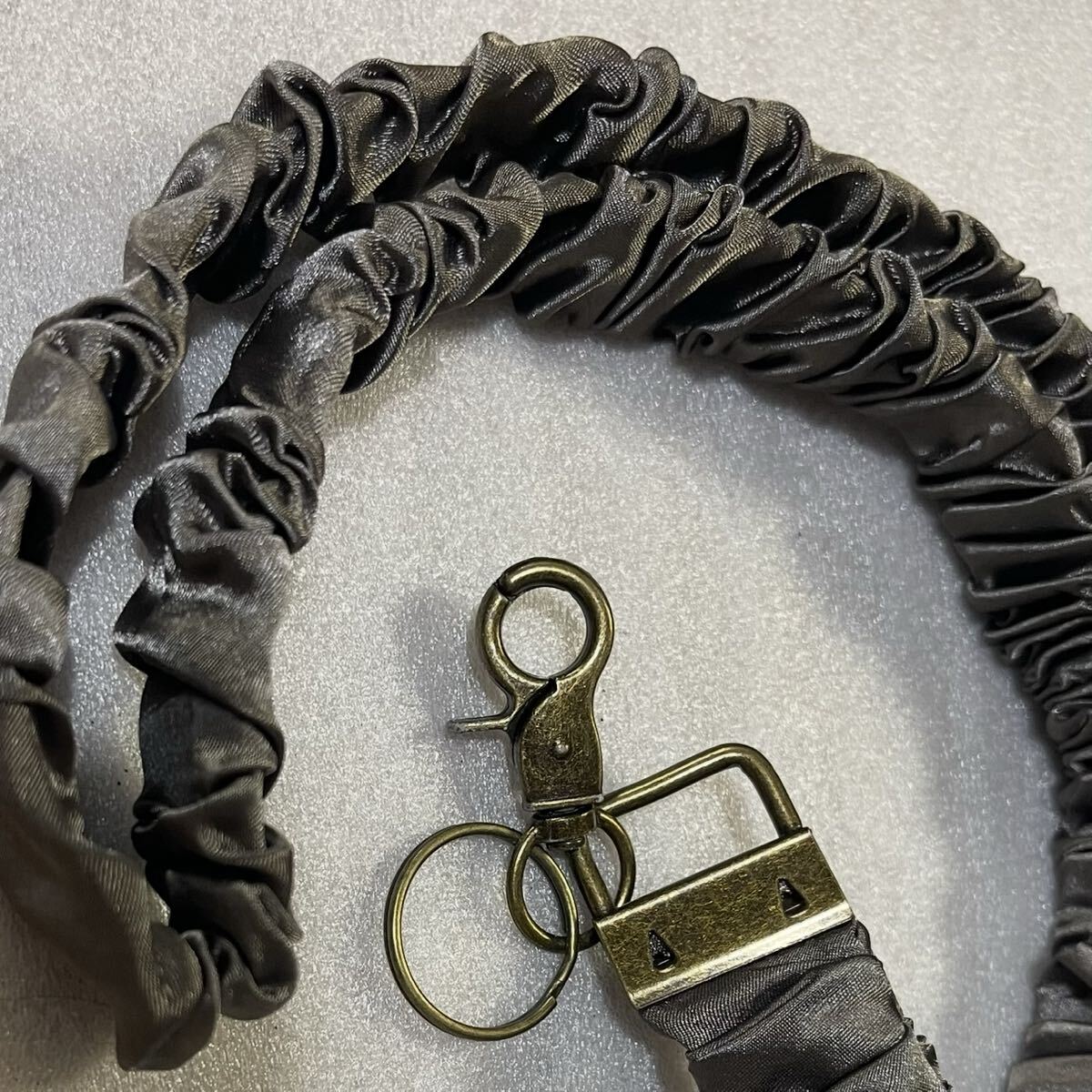 ストレッチ素材のフリルデザインで、スナップフック付きのネックストラップです。