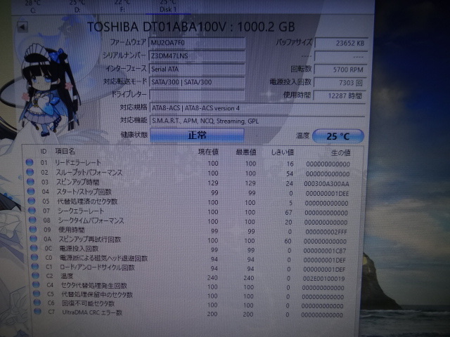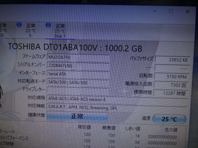 | TOSHIBA製HDD DT01ABA100V 1TB SATA600 5700 |