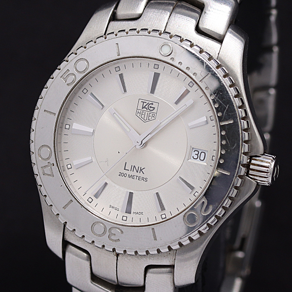 1円 保付 稼働 タグホイヤー リンク WJ111-0 QZ シルバー文字盤 メンズ腕時計 0566500 10TLT MST