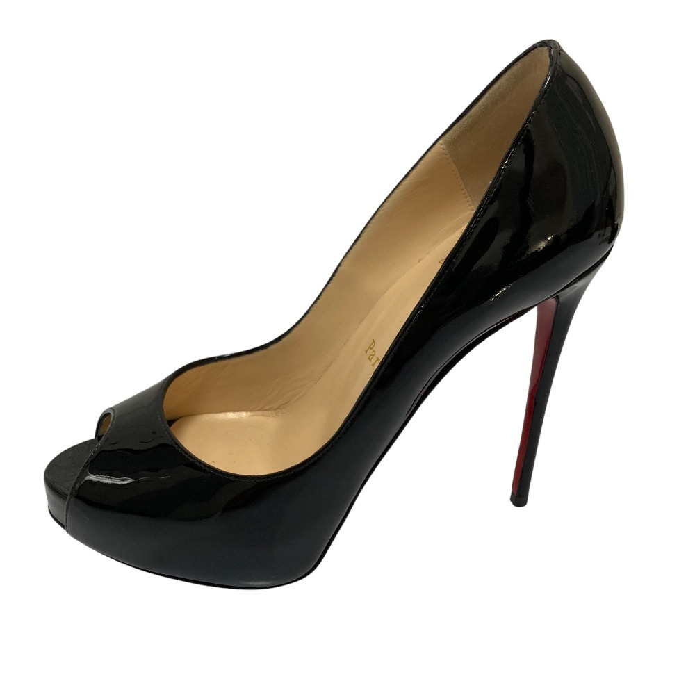 美品 Christian Louboutin クリスチャンルブタン オープントゥ パテントパンプス サイズ35 1/2 約22.5cm ブラック