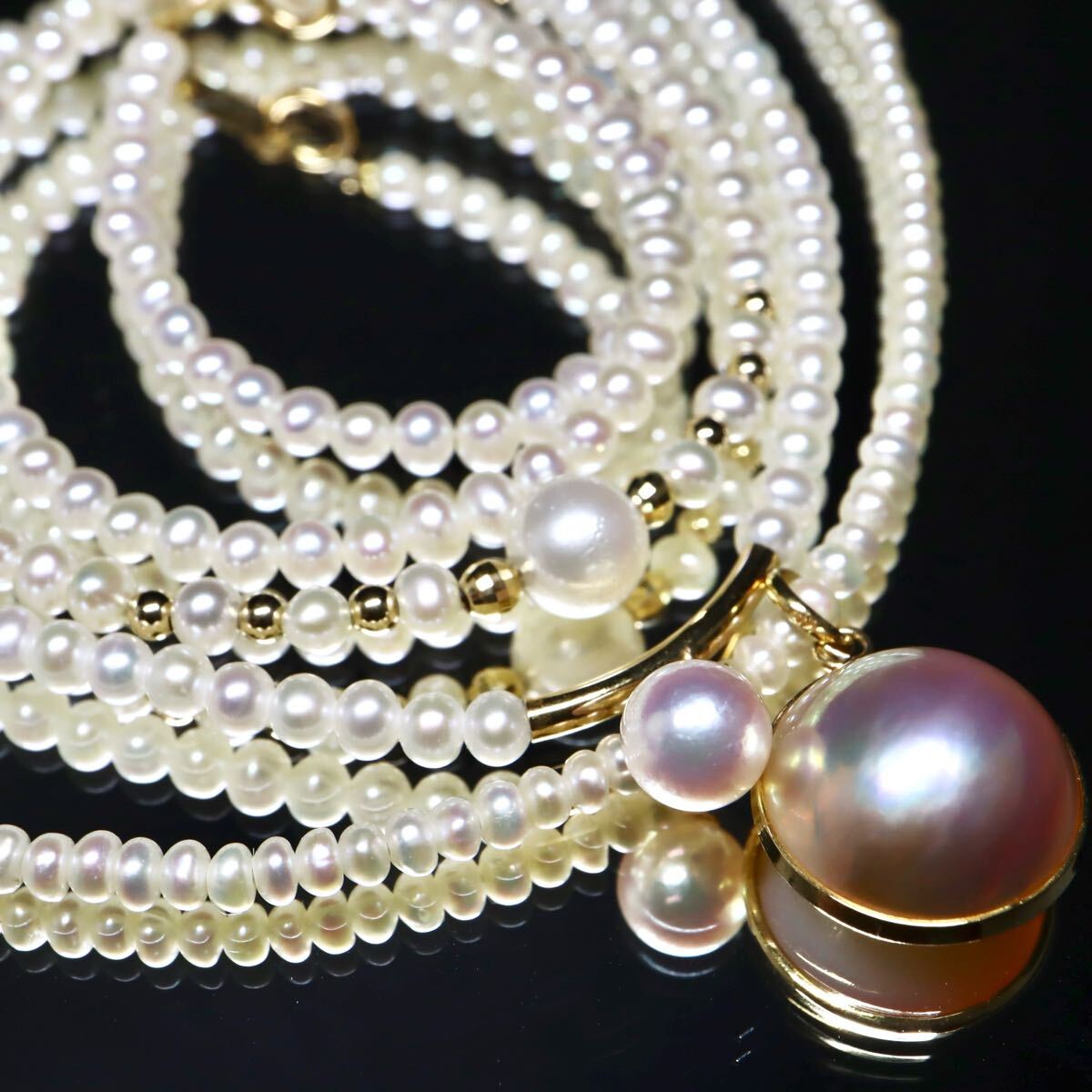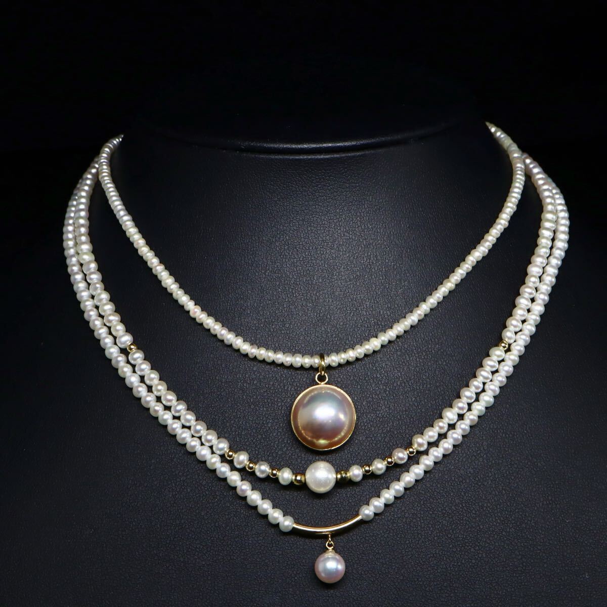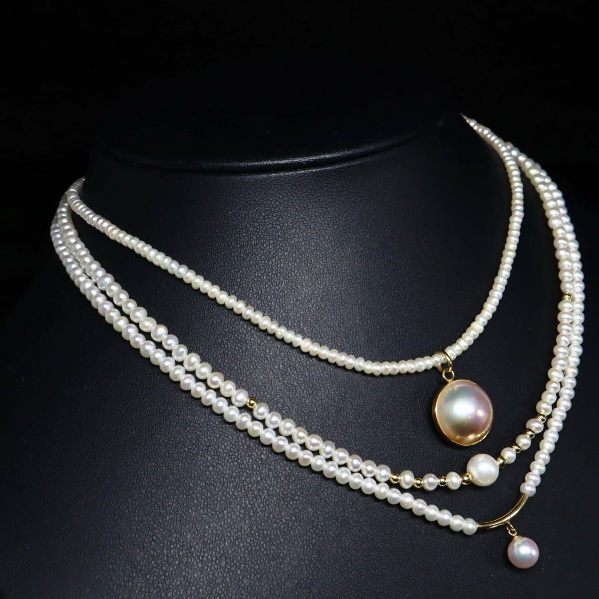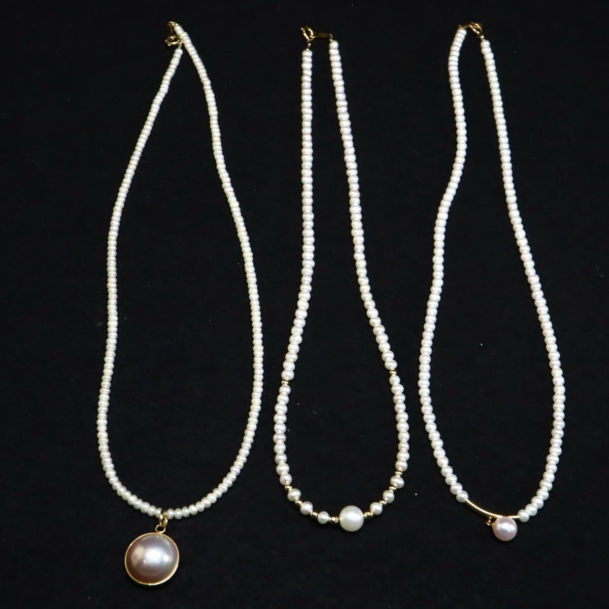 〈アコヤ本真珠/マベパール付き!!本真珠ネックレス3点おまとめ〉
