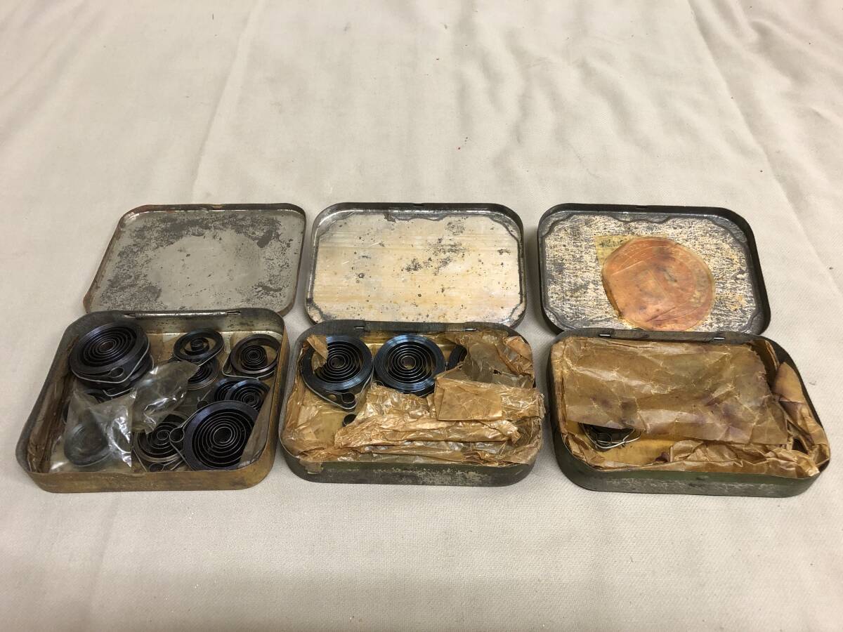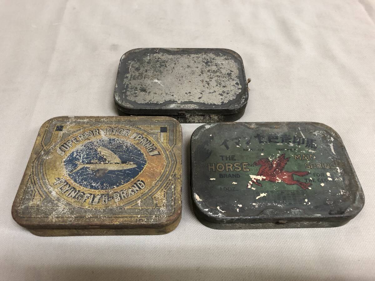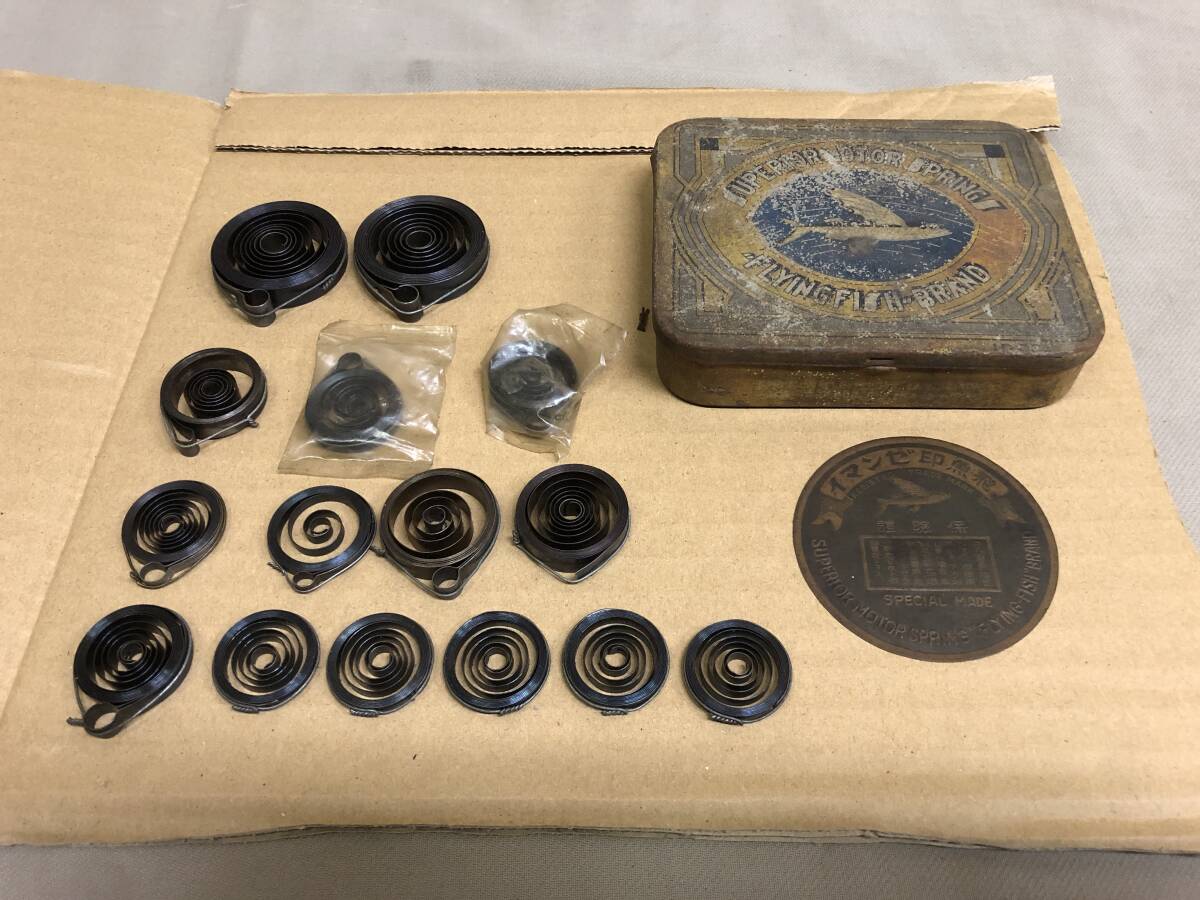 馬印青色ゼンマイ 飛魚印ゼンマイ バネ スプリング 修理用 まとめて23個 昭和レトロ 缶 アンティーク レア