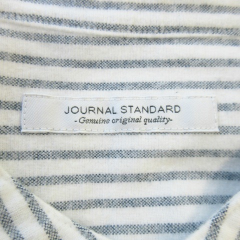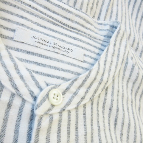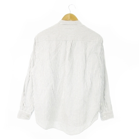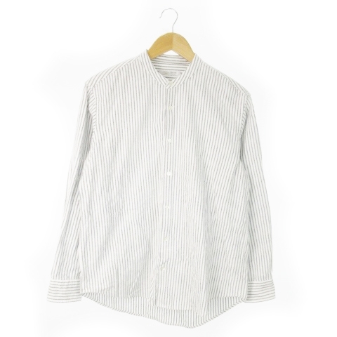 ジャーナルスタンダード JOURNAL STANDARD ネルシャツ バンドカラー 長袖 コットン ストライプ 総柄 M 白 ホワイト /AO12 メンズ