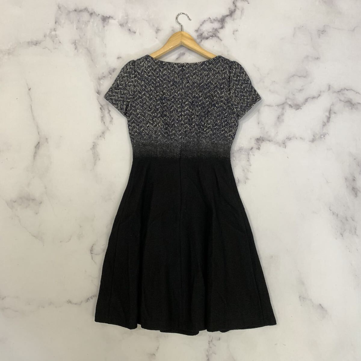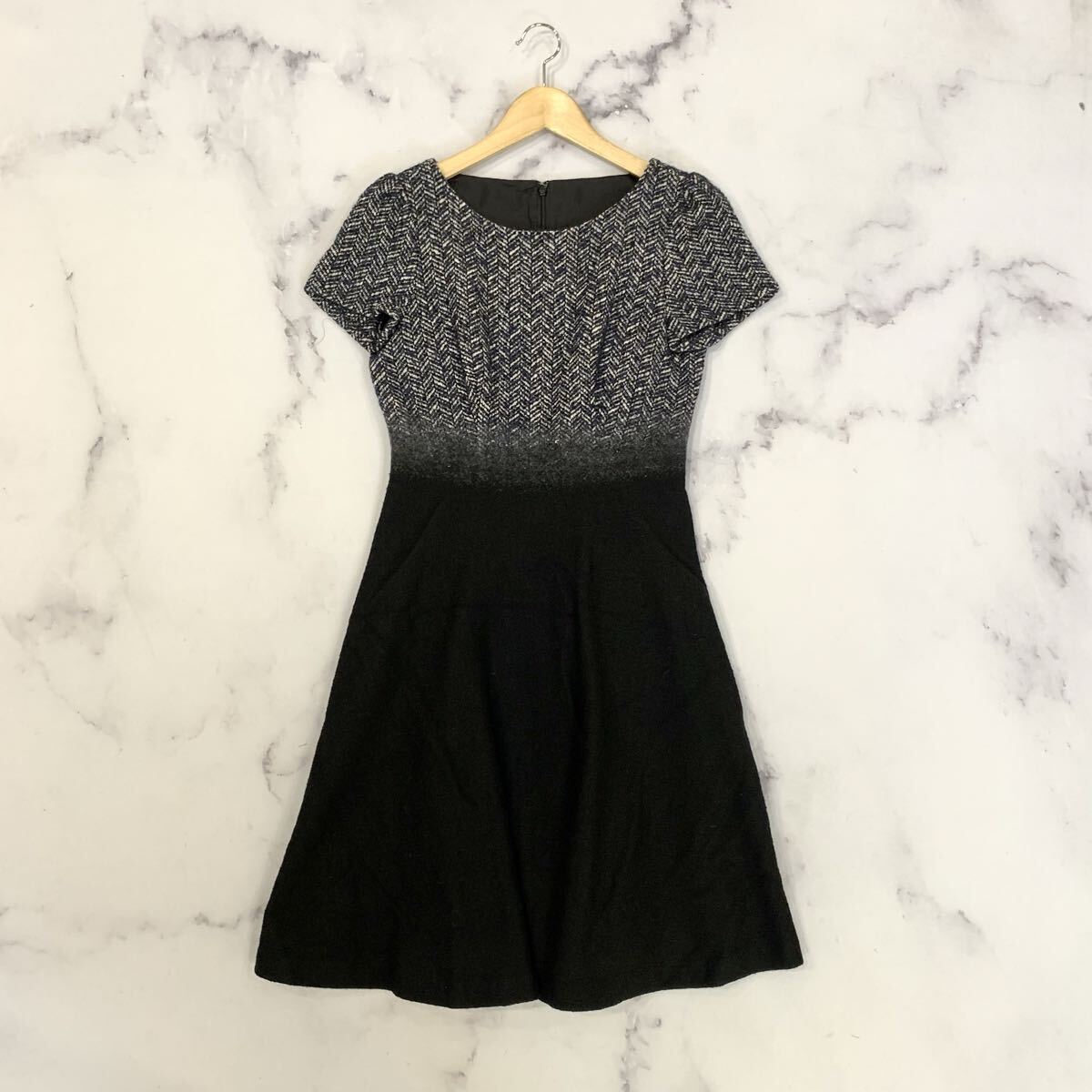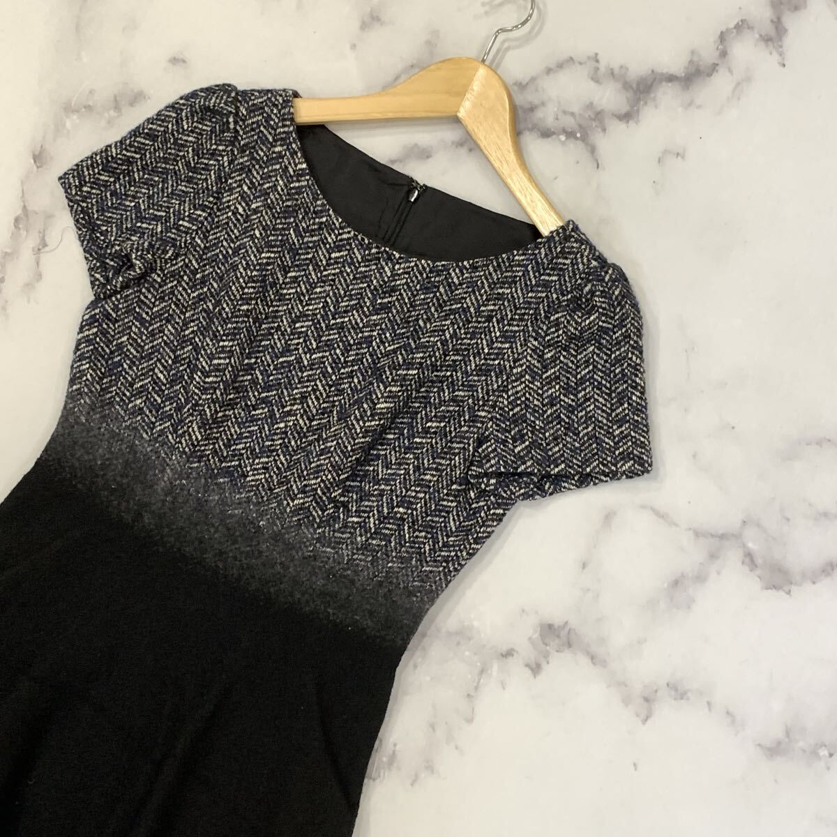 A6 ▼ 日本製 'ヘリンボーン' ANAYI アナイ バイカラー 半袖 ニット ドレス ワンピース 38 レディース 婦人服 トップス