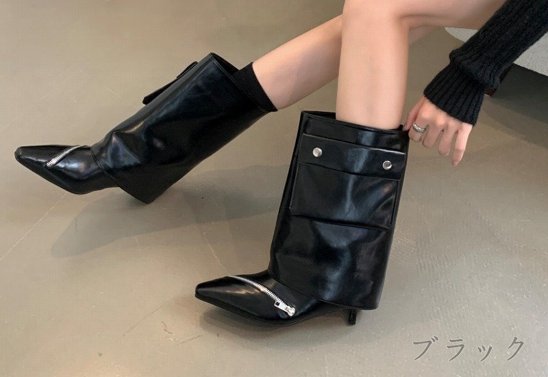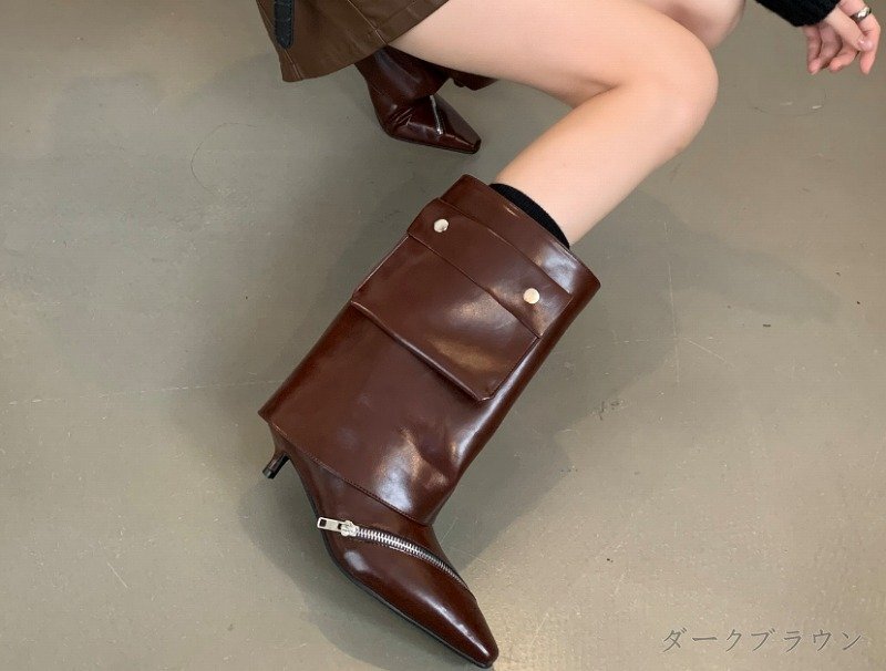 ブーツ とんがりトゥ 切り替え 無地 シンプル 【39】24~24.5cm ダークブラウン