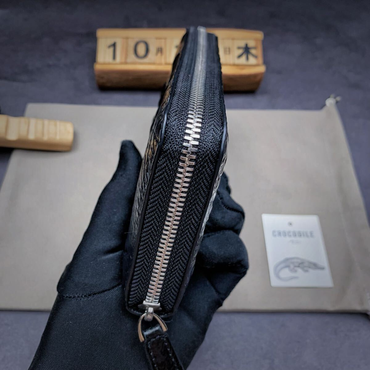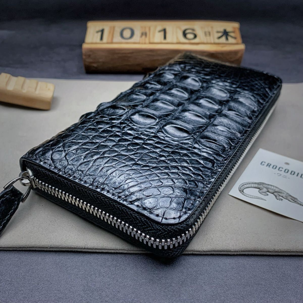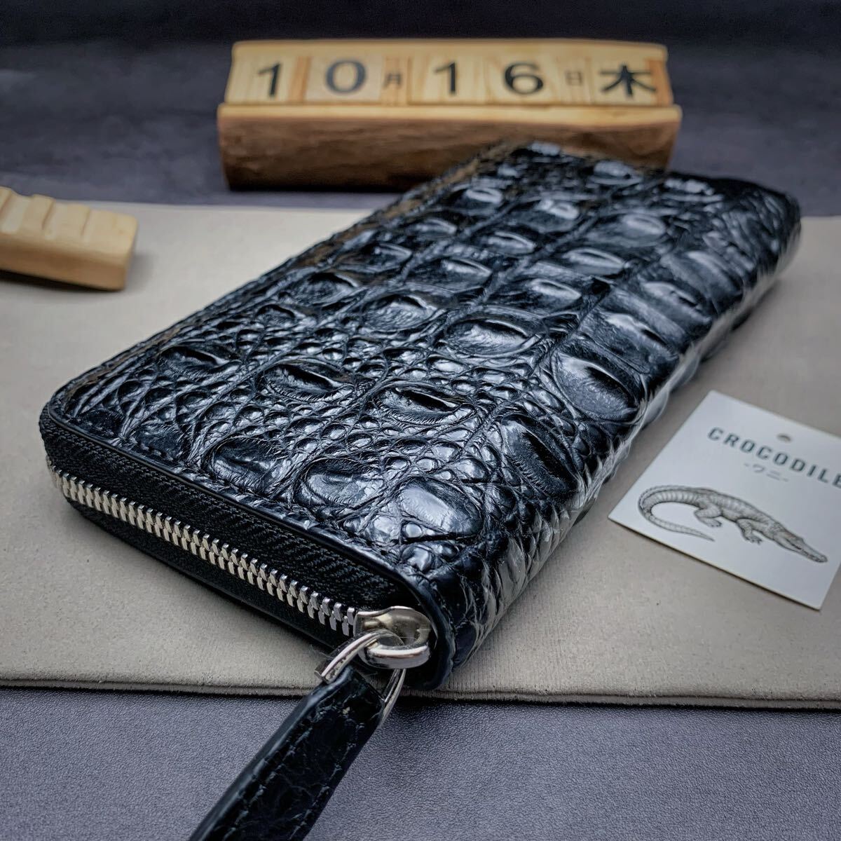 黒色【クロコダイル】 背革 ワニ革 長財布 ラウンドファスナー 本物保証 背革使用 小銭入れあり 背鰭 メンズ財布 一枚革 実物写真