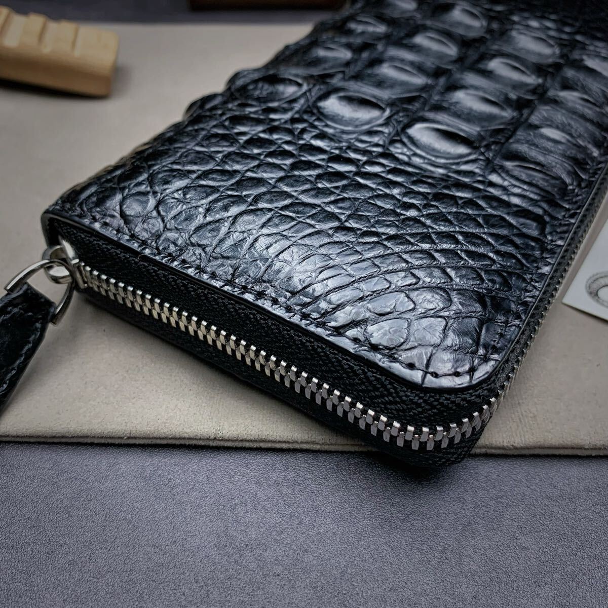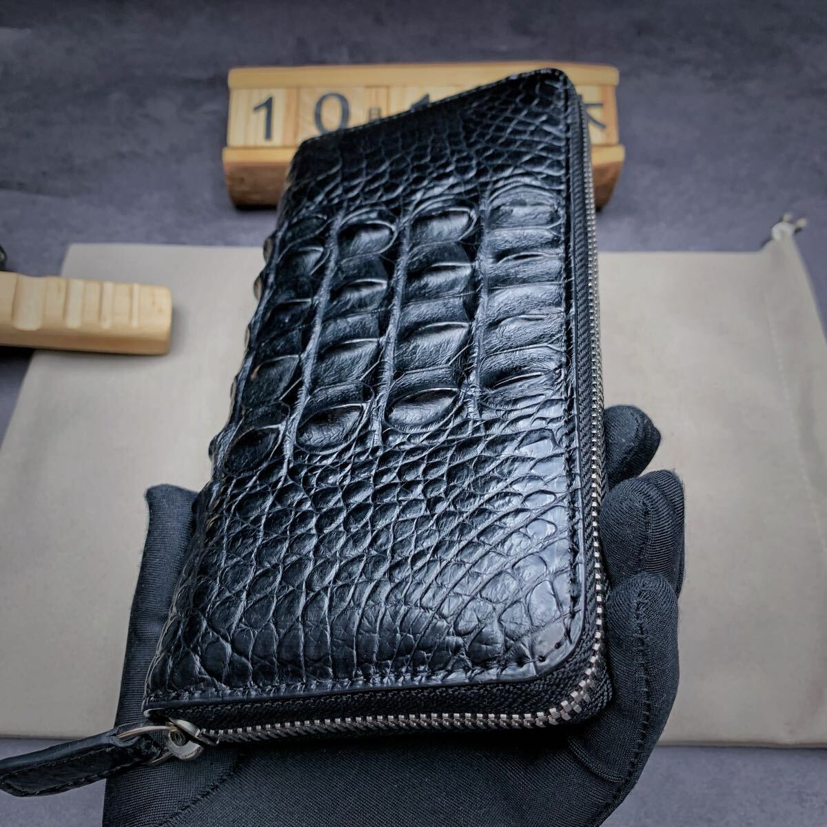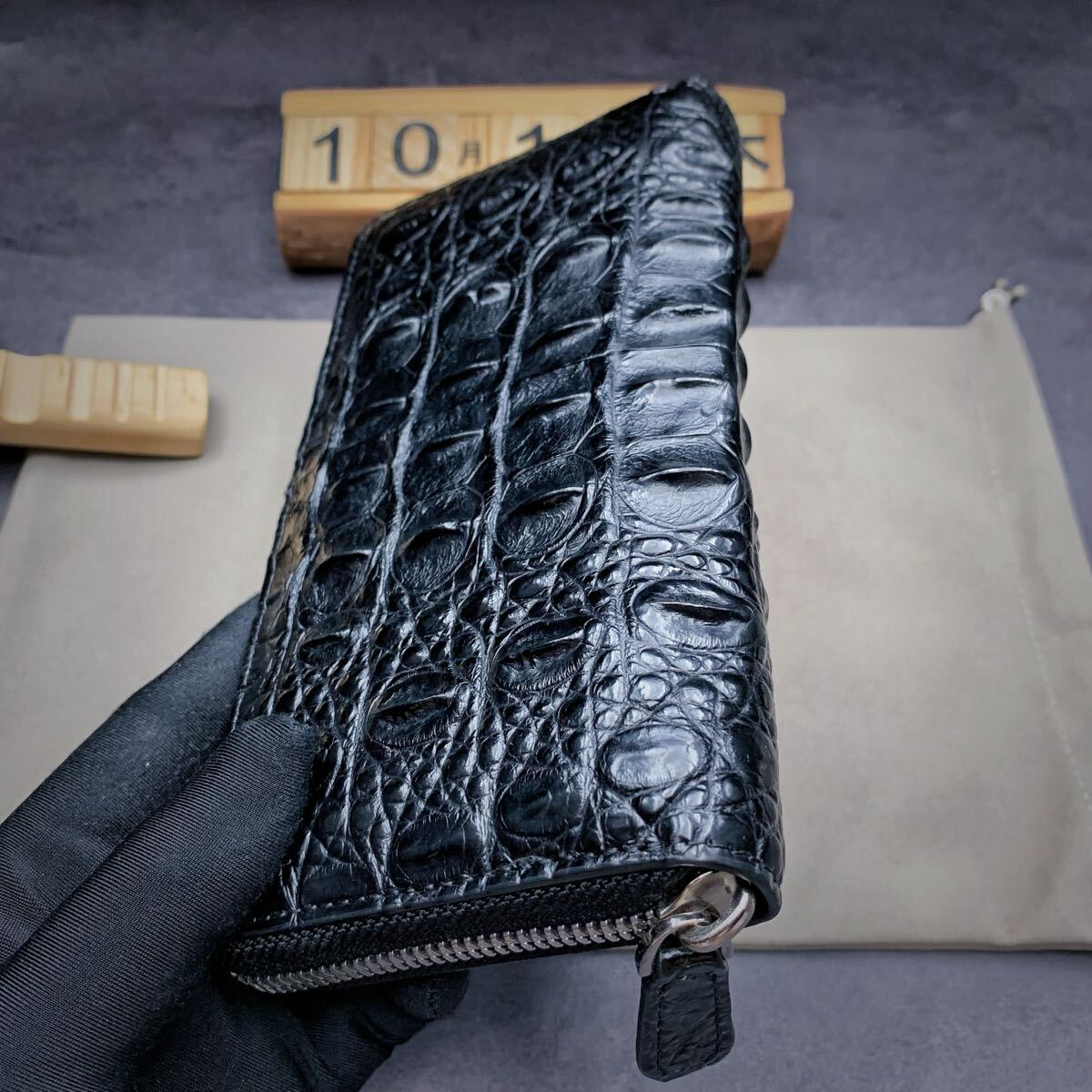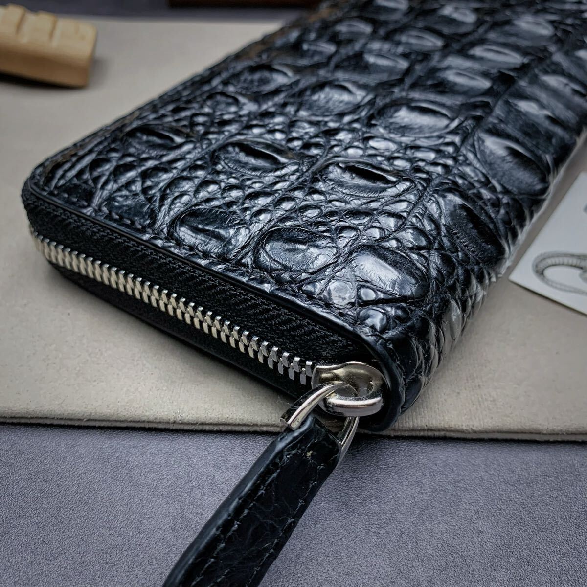 黒色【クロコダイル】 背革 ワニ革 長財布 ラウンドファスナー 本物保証 背革使用 小銭入れあり 背鰭 メンズ財布 一枚革 実物写真