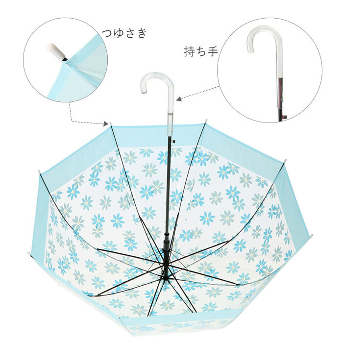 | 注意点 | ※本製品に尖った部分があります。周りの人やものにあたらないよう、周囲の安全を確認してからご使用下さい。 ※傘の開閉時やシャフトの伸縮時には、顔や身体から離してご使用下さい。 ※本製品の手元や骨が折れたりした場合には、怪我や事故になる恐れがあるため、使用を中止して下さい。 ※強風の時は、本製品が破損する恐れがありますので使用しないで下さい。 ※本製品をステッキとして使用するなど、傘本来の目的以外での使用は止めて下さい。 ※本製品は、自転車・ベビーカーなどの固定する器具に取り付けて使用する構造になっておりません。視野の妨げ、事故・破損の原因となる恐れがありますので、絶対に取り付けないで下さい。 ※本製品には、構造上、骨同士が狭くなっているので、骨に挟まれたりけがをする恐れがありますので、手や指を入れないで下さい。 ※ハンドクリームや日焼け止めクリーム等が、本製品の生地・手元等の色落ちの原因になる場合があります。 ※ご使用後は、本製品を陰干しにして乾かしてからおしまい下さい。濡れたまま保管しますと、錆の発生や生地の色移りの原因となる場合があります。 ※お子様がお使いの際には、保護者の方のご指導の上でご使用下さい。 ※カメラやモニターの性質により、画像と実物の色の違いがある場合がございますのでご理解願います。 |