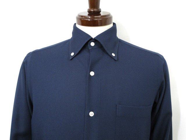 超美品【タケオキクチ TAKEO KIKUCHI】 ボタンダウン 織柄 長袖シャツ (メンズ) size2 ネイビー系 ◇38MK6294◇