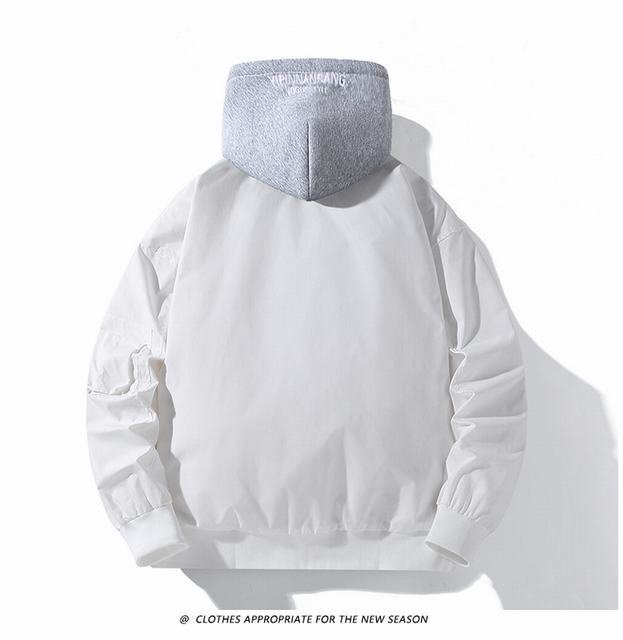 メンズスタジャン コーチジャケット メンズ アウター ブルゾン シャツジャケット 秋春服 取り外しフード付き カジュアル グレー XL
