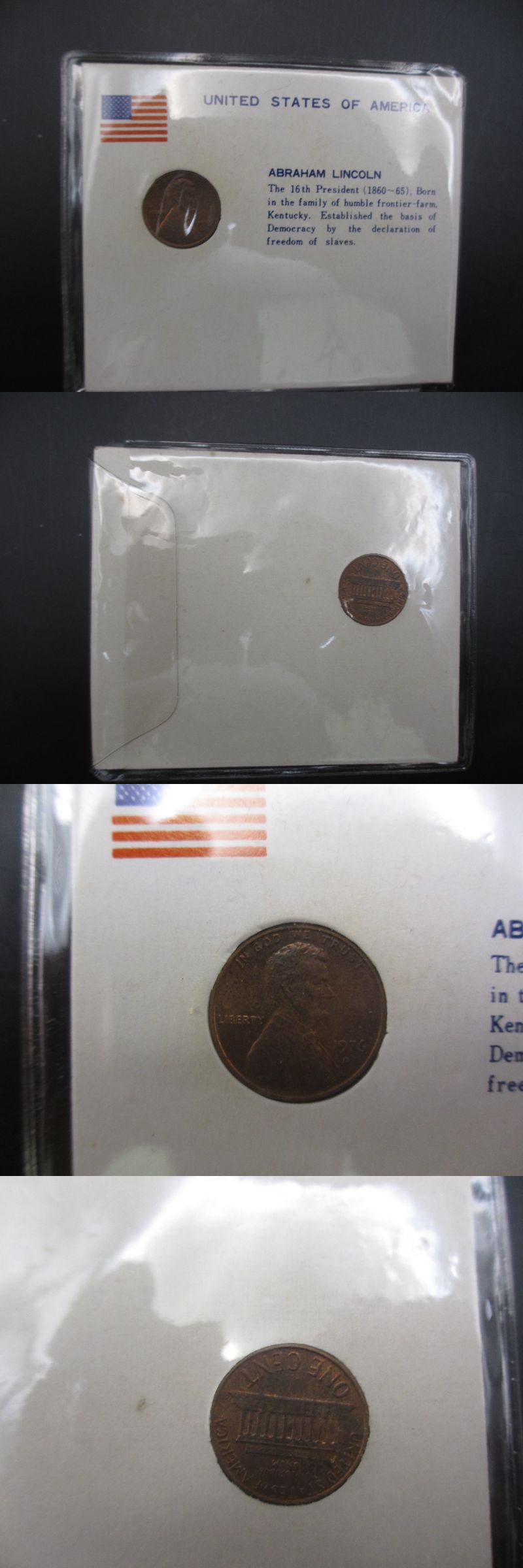 1976年製のリンカーン・セントと、エイブラハム・リンカーンの略歴を記したカードを組み合わせた記念品