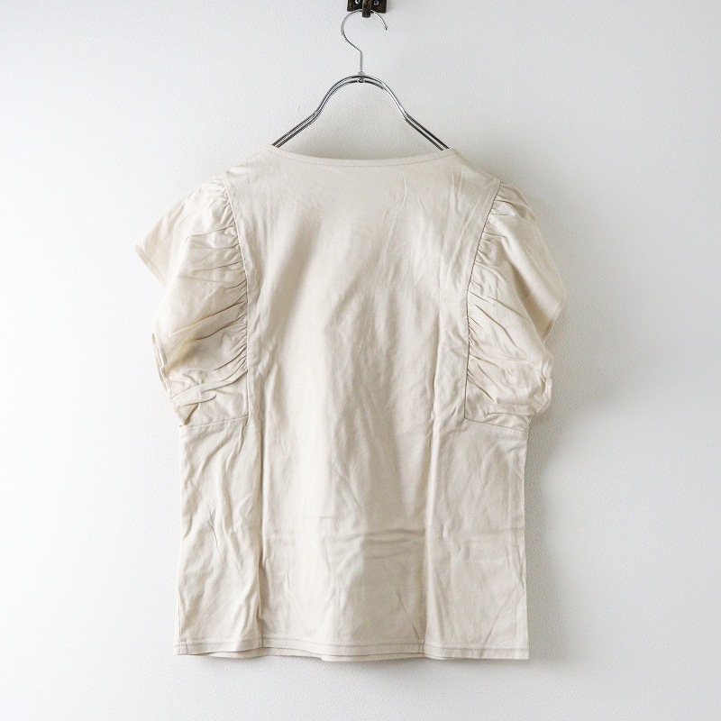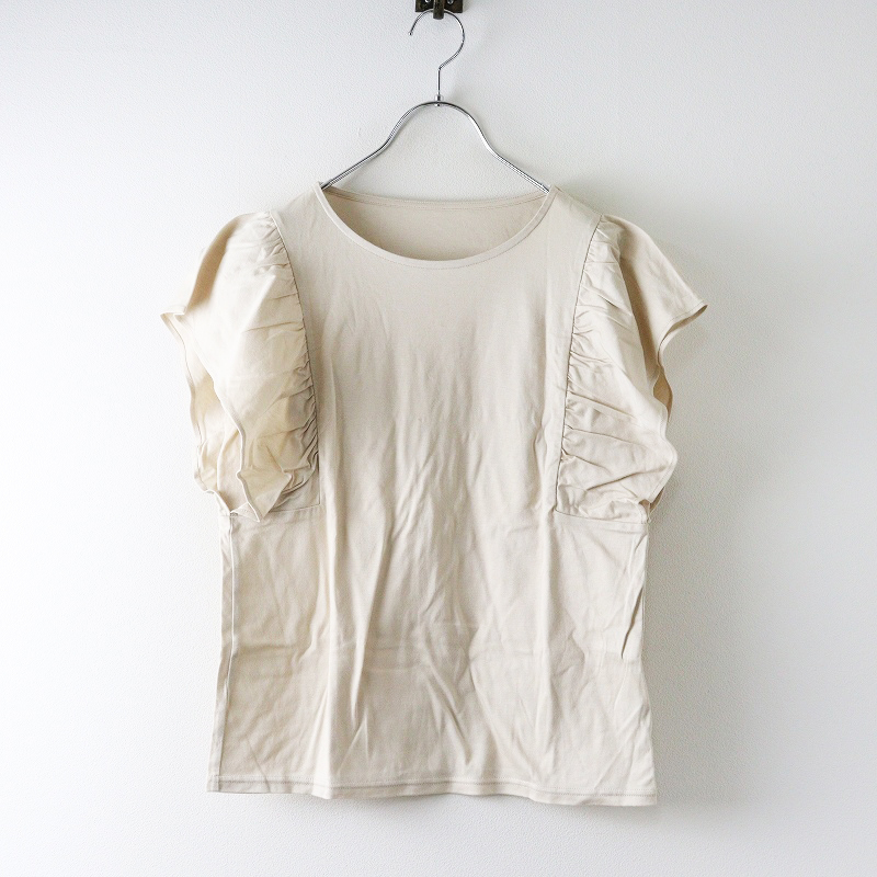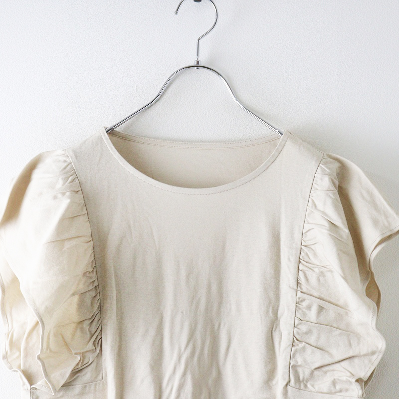 2023SS スローブイエナ SLOBE IENA ナノシアフリルスリーブプルオーバー\ベージュ カットソー ギャザー Tシャツ【2400014658217】