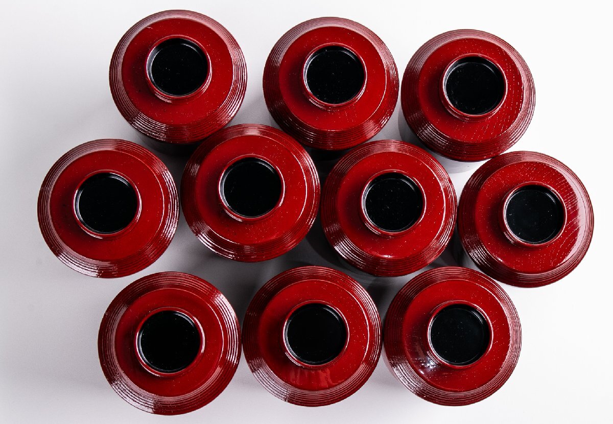 【うつわ】塗師 芝仙 妹塗 小吸物椀 10客 共箱 F008 茶道具 古美術 骨董 古玩 日本料理 懐石 料亭