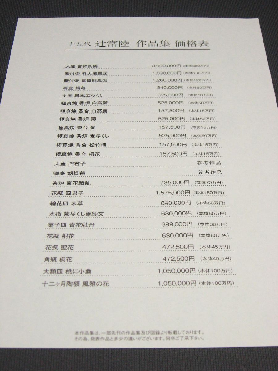 | 商品名 | 十五代 辻常陸 作品集 価格表付き/検索:禁裏御用窯元・宮内庁御用達・極真焼 (273) |