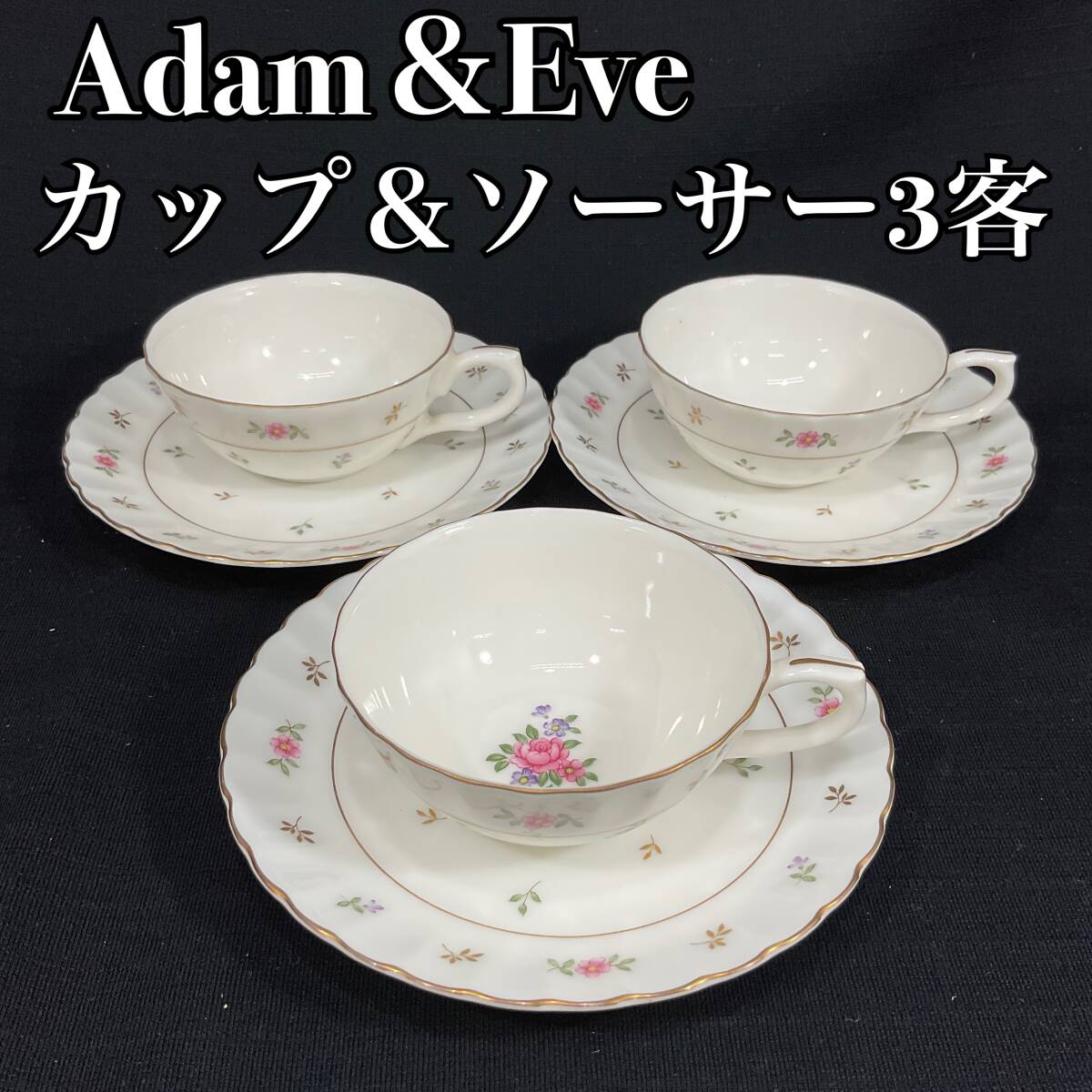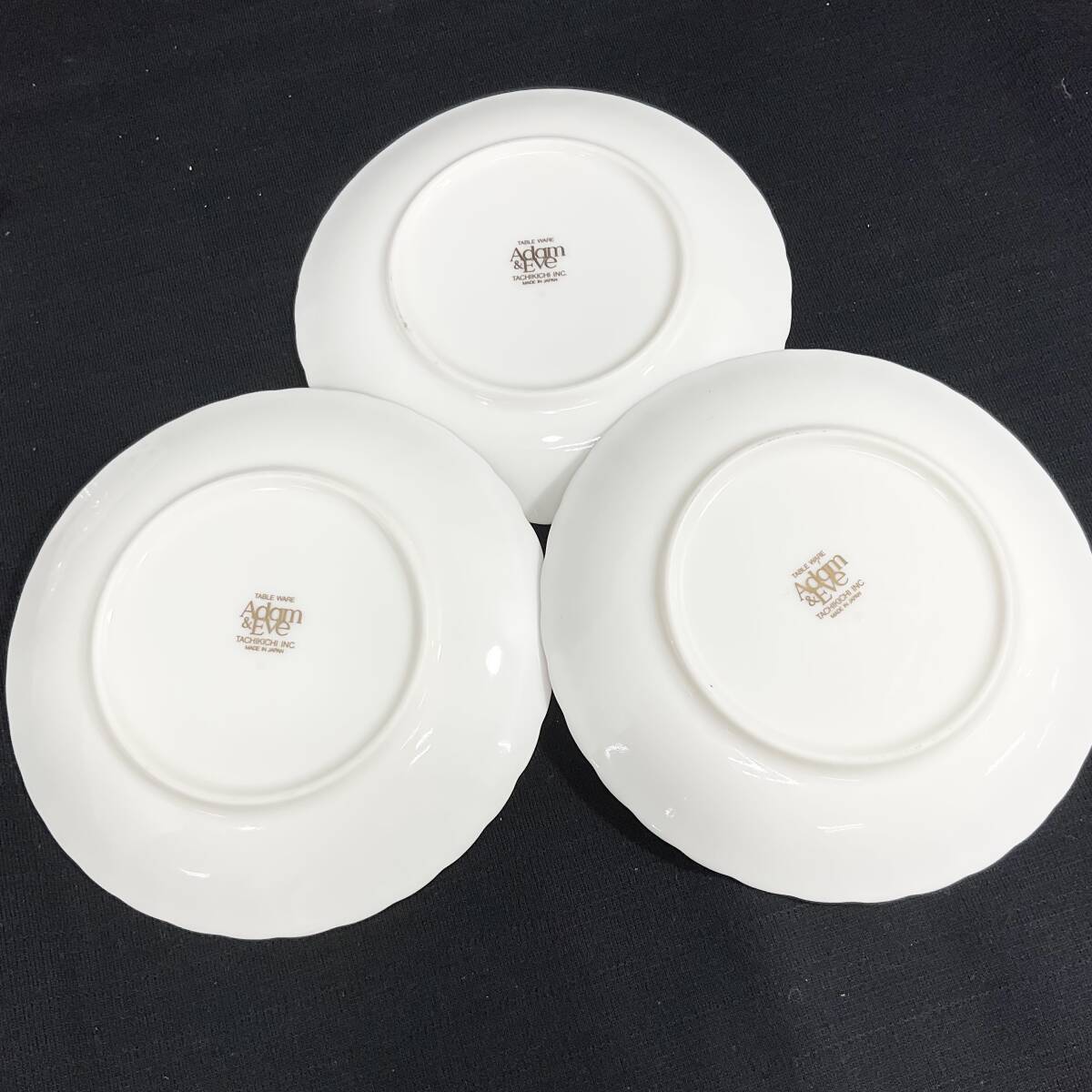 【未使用】アダム&イヴ カップ&ソーサー 3客セット ホワイト 金縁 花柄 レトロ たち吉 TACHIKICHI Adam&Eve (E339)