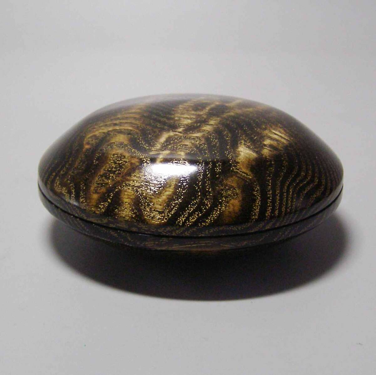 タモ玉斑杢の材を黒漆染にして 伝統工芸の技術の一つである沈金技法により