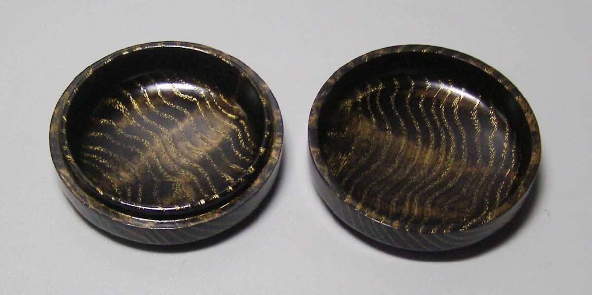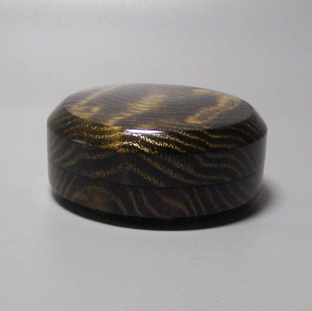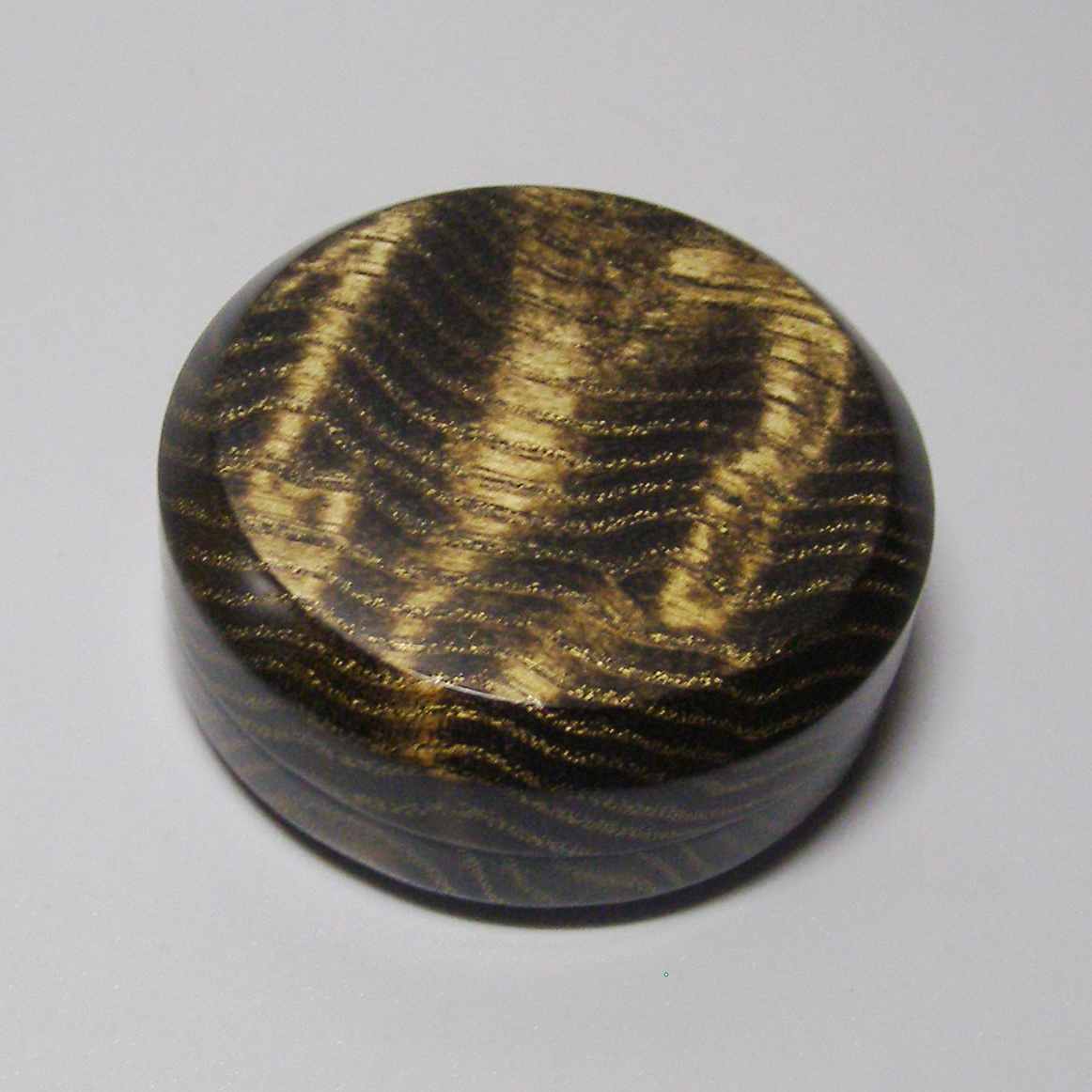 タモ玉斑杢の材を黒漆染にして 伝統工芸の技術の一つである沈金技法により