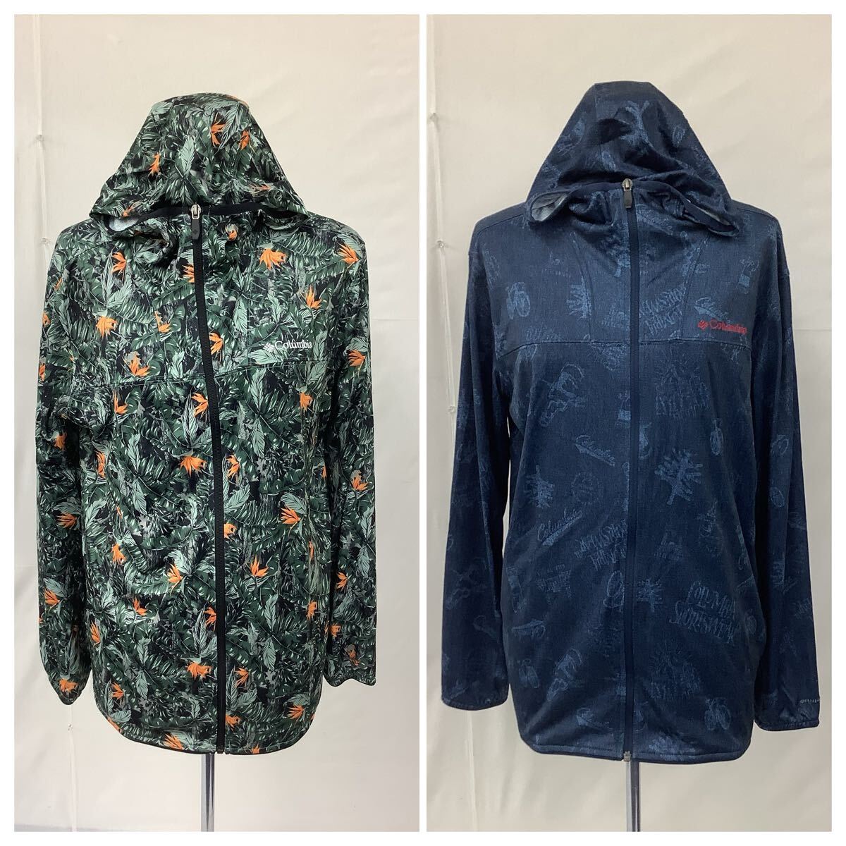 Columbia コロンビア ジャケット 2着セット PM1866 オムニフリーズ フード付 Mサイズ 総柄 ネイビー アウトドア