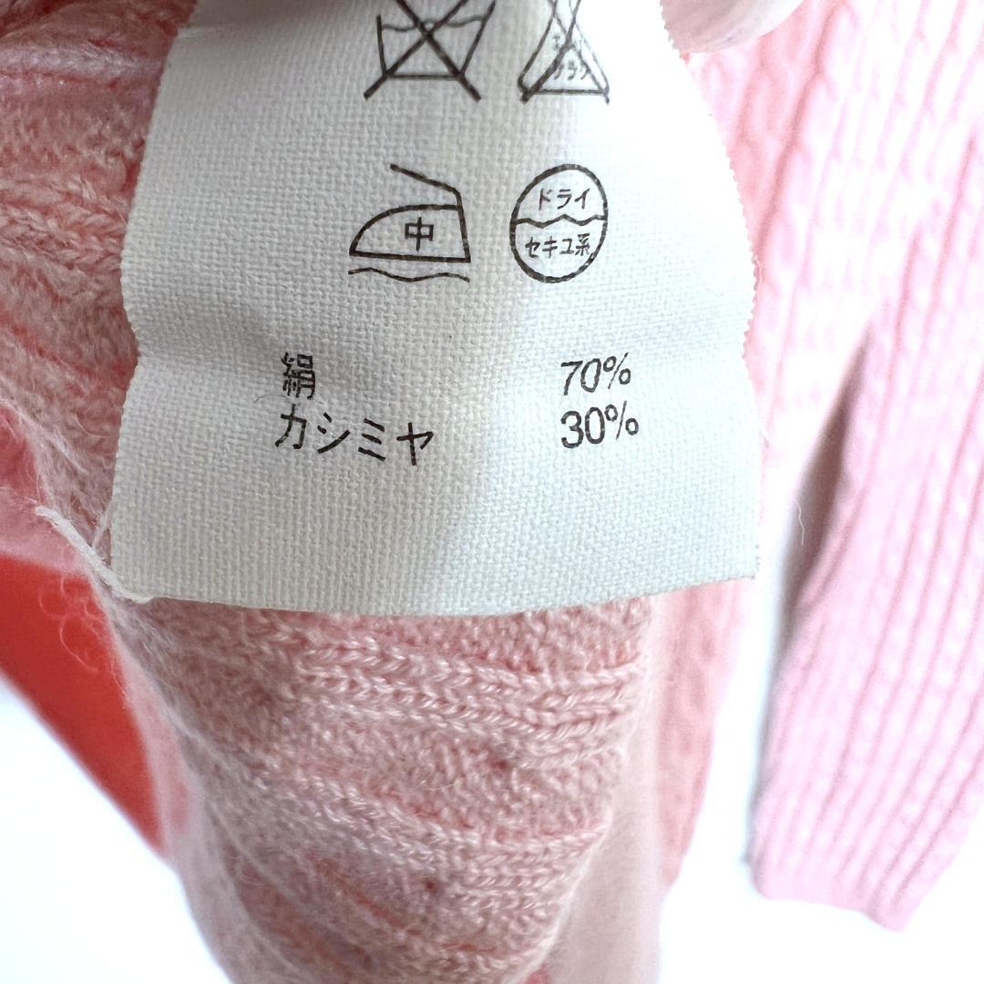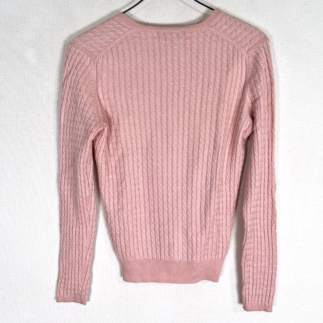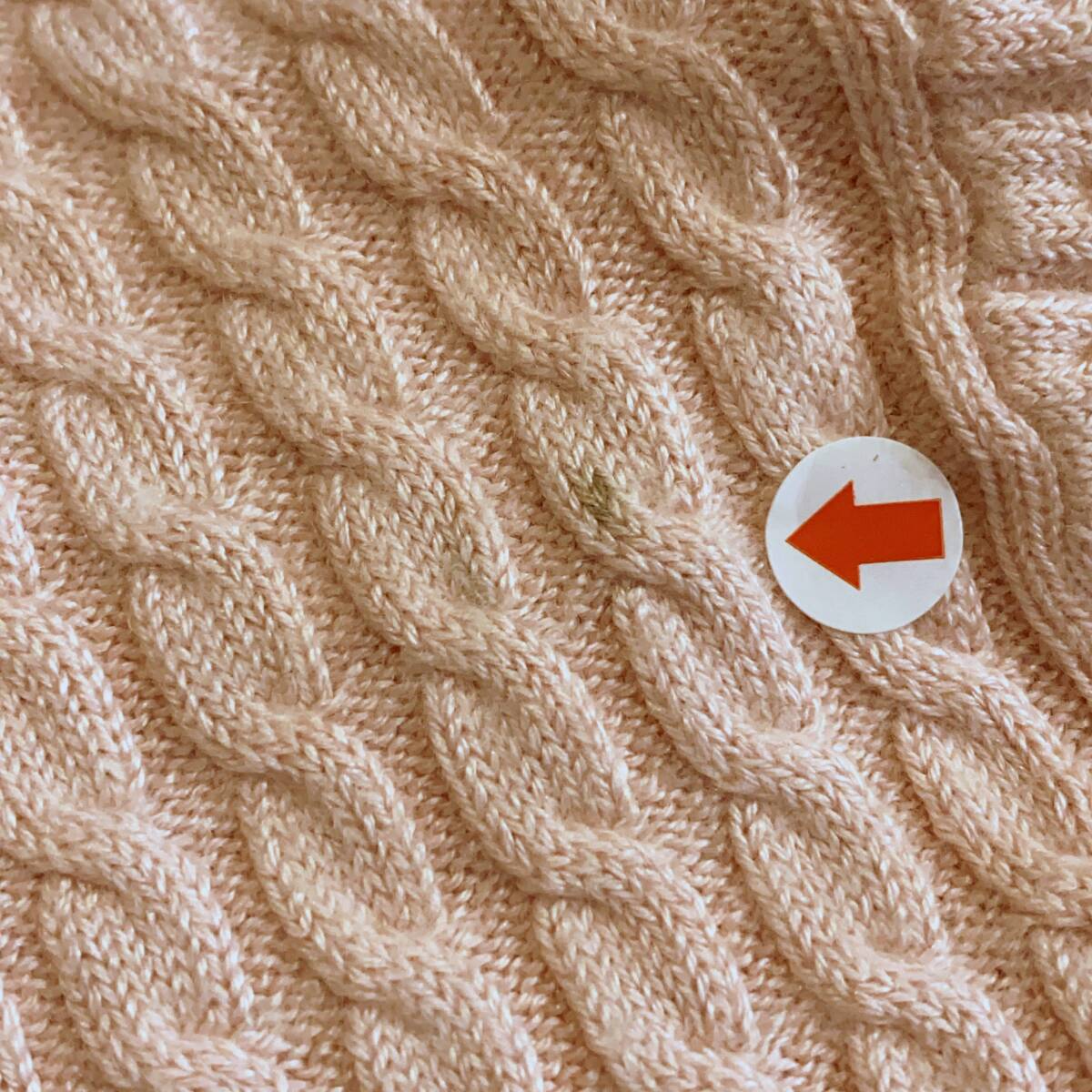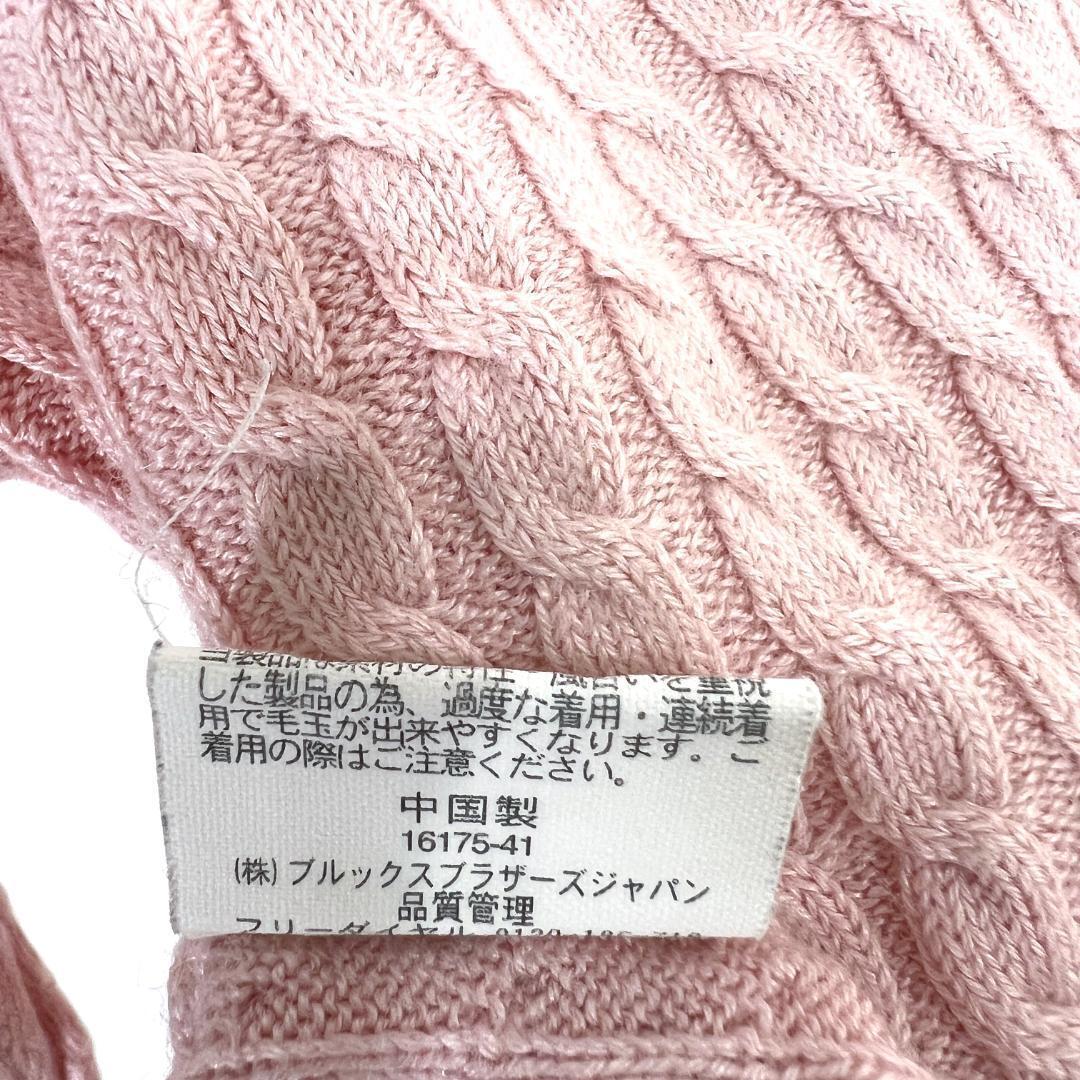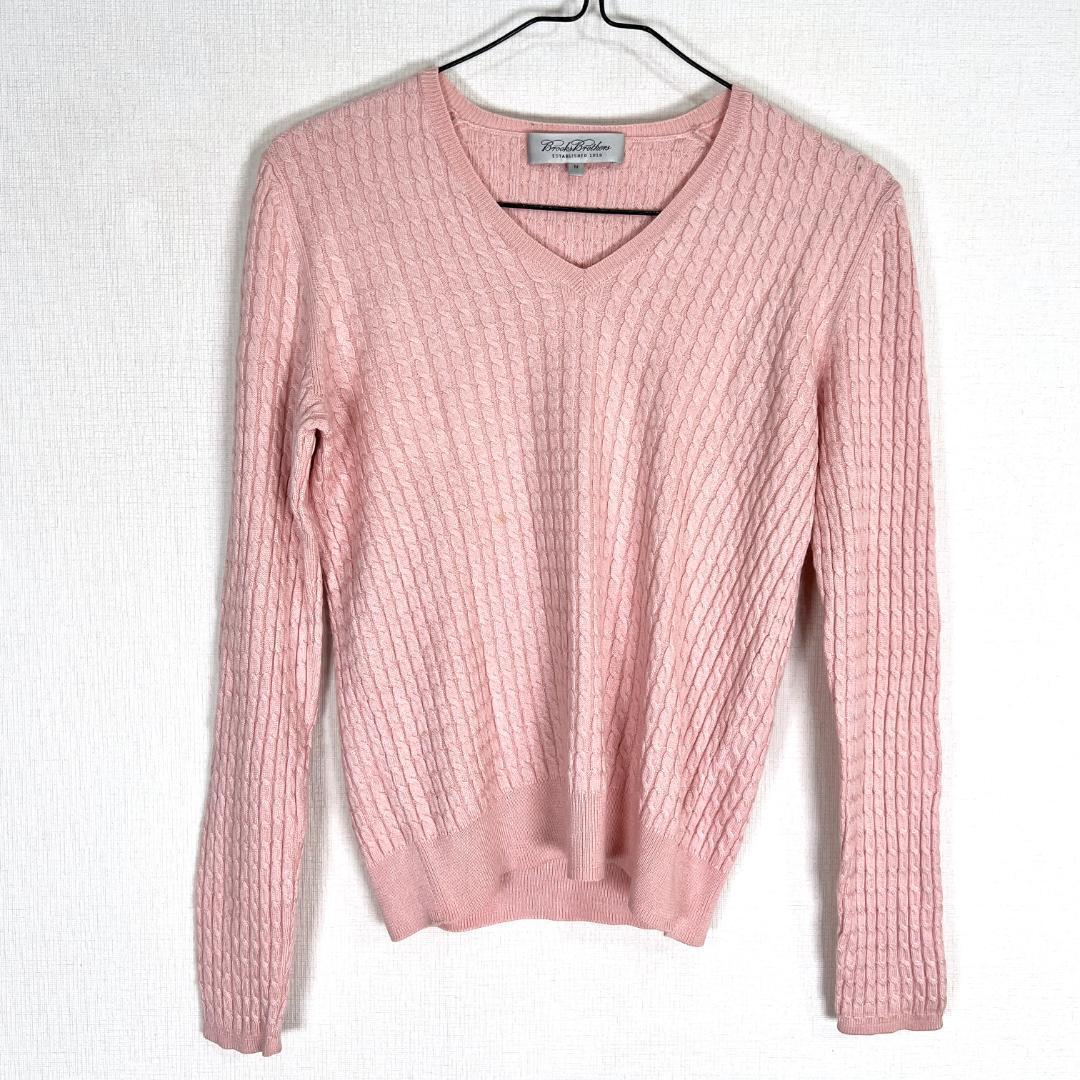 女性用のピンク系のケーブル編み ニットセーターです。写真のように肩に少し汚れがあります。その他はまだまだ使えます。古着 ブルックスブラザーズ 株式会社ブルックスブラザーズジャパン