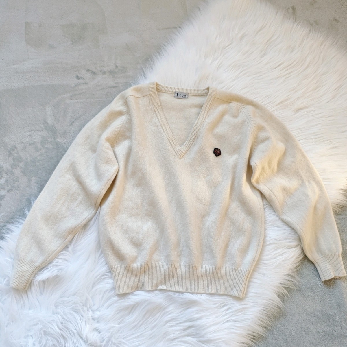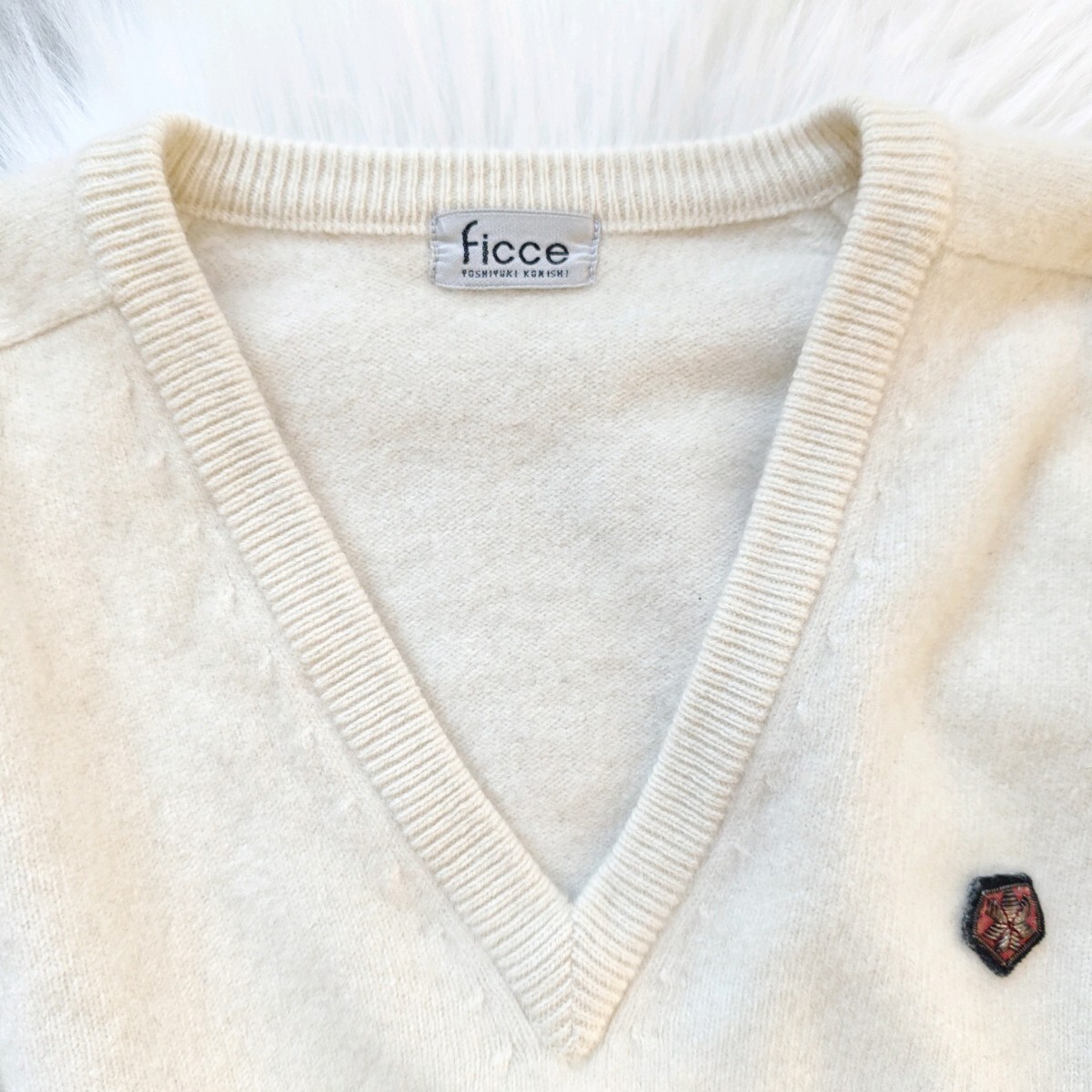 #ficce #ToshiyukiKonishi #フィッチェ #JapaneseDesigner #Vネックニット #ヴィンテージニット #アイボリーセーター #カシミヤタッチ #MadeinJapan #VintageJapan #90sFashion #WinterKnit #ClassicStyle