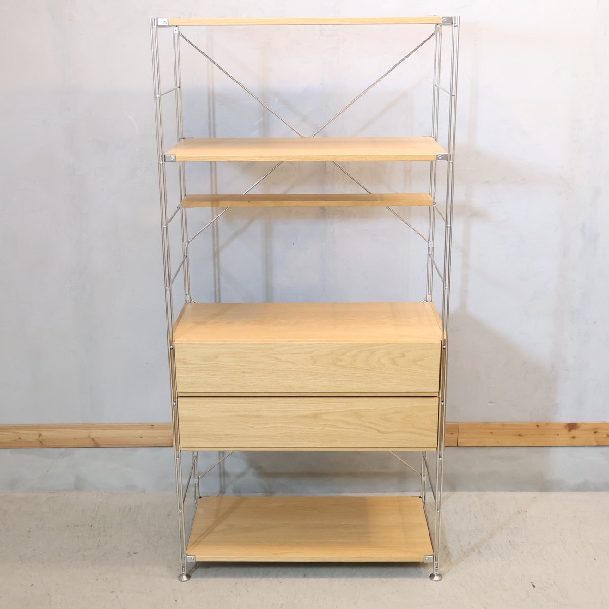 無印良品 MUJI オーク材 ステンレスユニットシェルフ 引出し付き 収納棚 オープンラック ナチュラル インダストリアル カジュアル FJ201